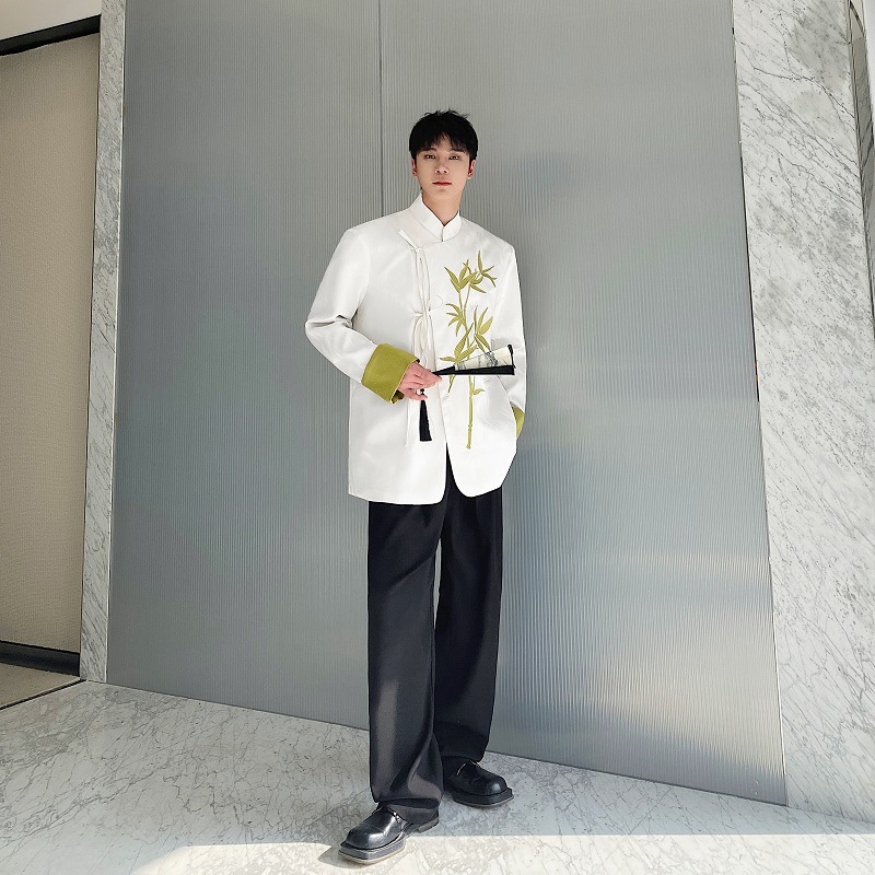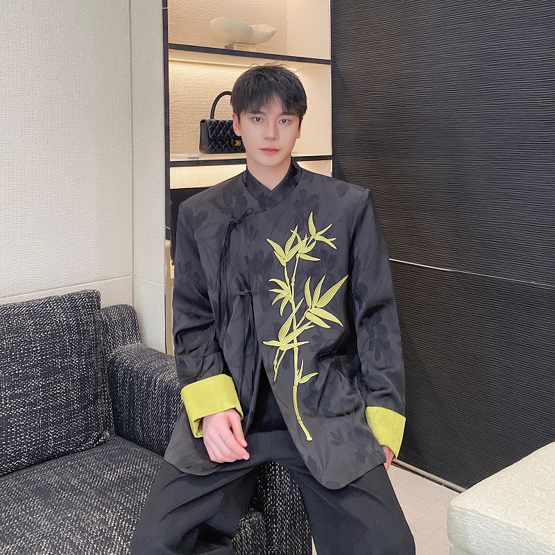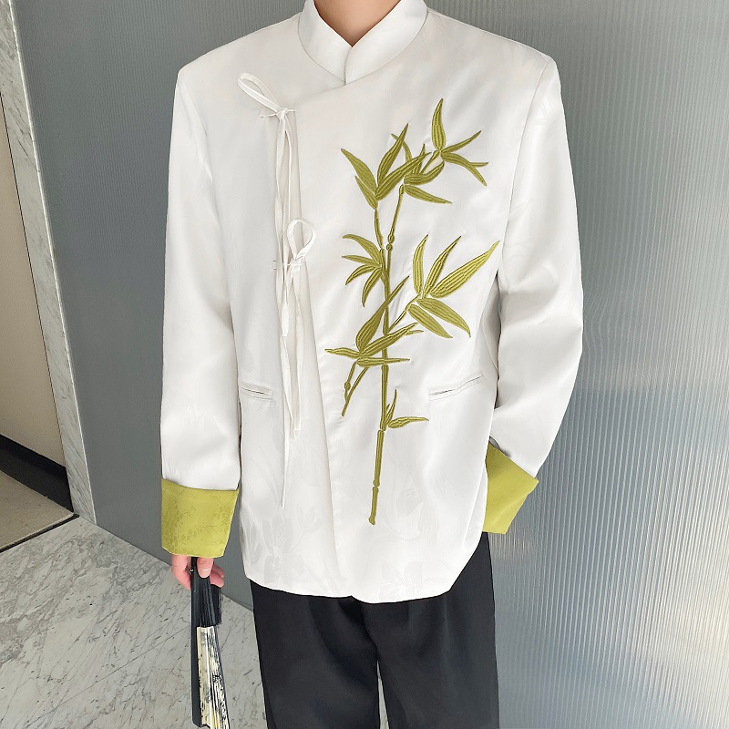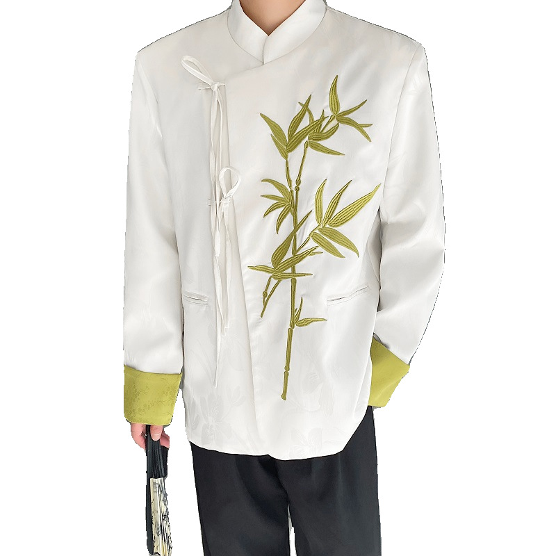 Spring New Chinese satin jacquard embroidered stand collar men’s and women’s suit National style Zen coat 3561-150