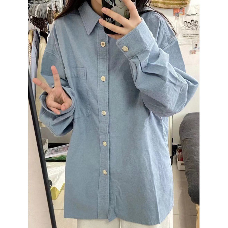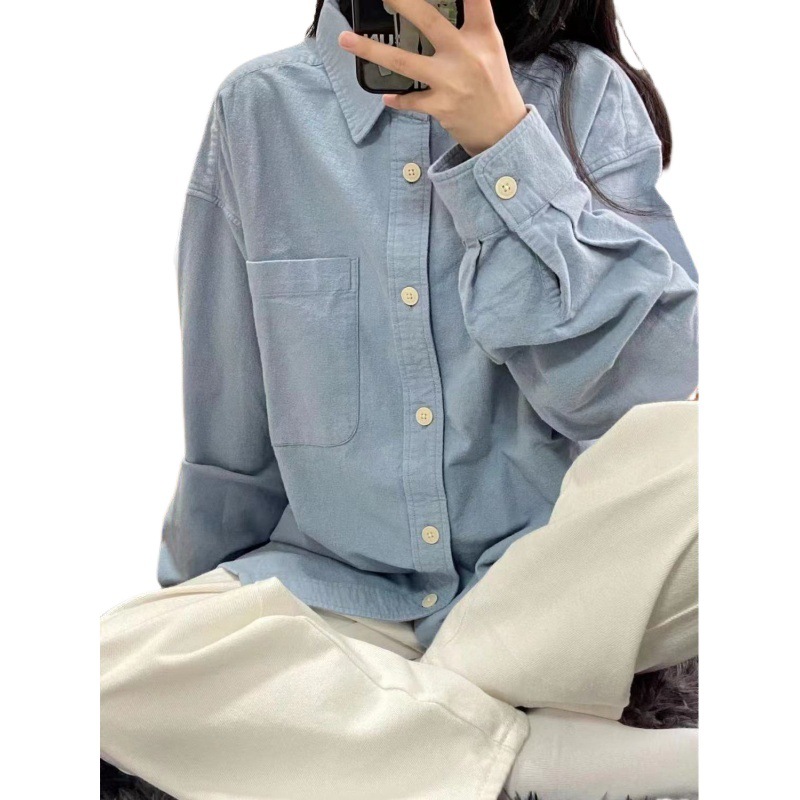 Spring New Cotton Shirt Women’s Korean-style Base Inner Loose All-match Hong Kong-style Lovers Coat Long-sleeved Shirt