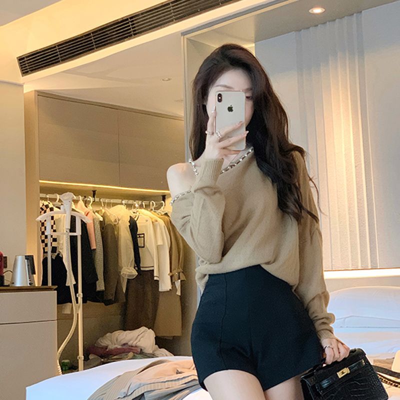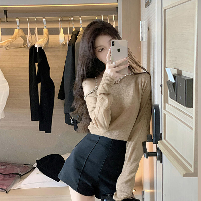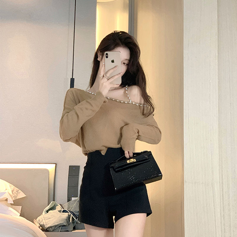 | nameOriginal | Spring New Design Sense Fried Street Elegant suit Women's Western Style Off-shoulder Sweater Knitwear High Waist Shorts Two-piece Set |