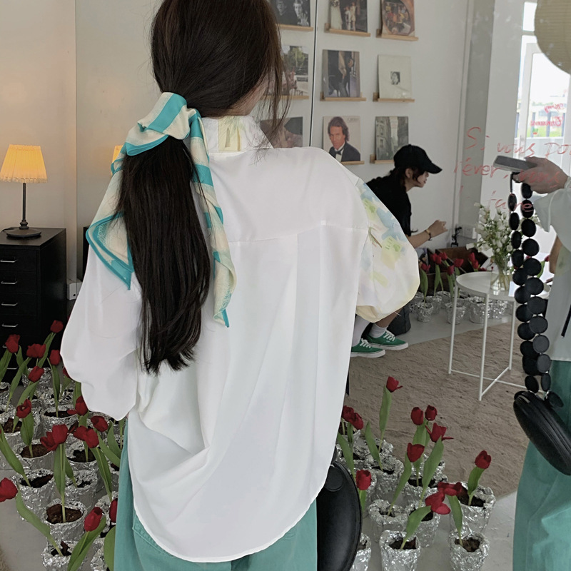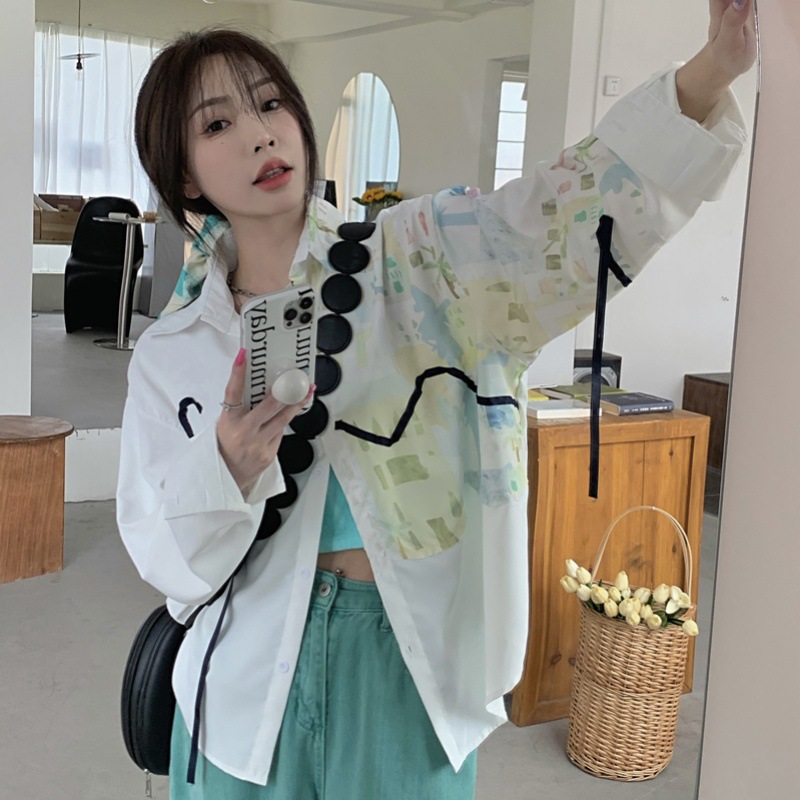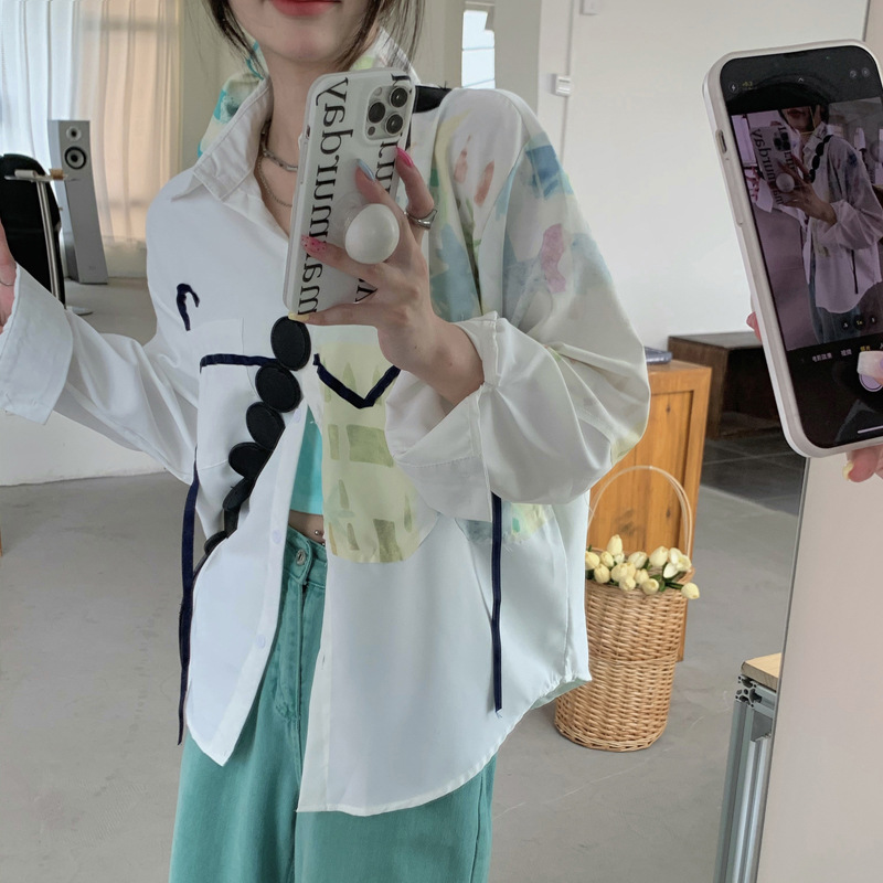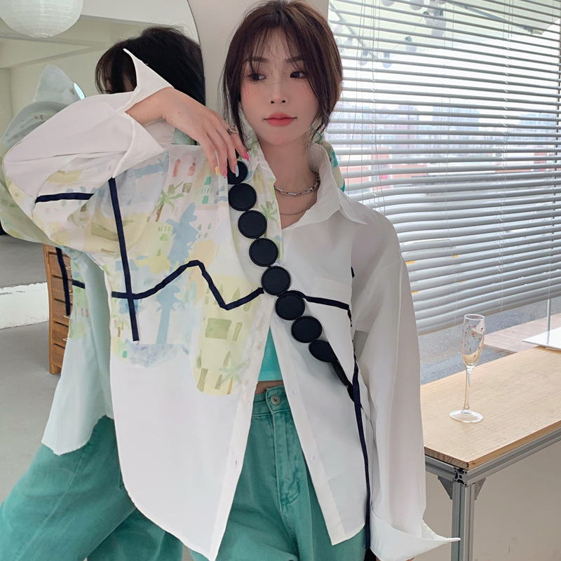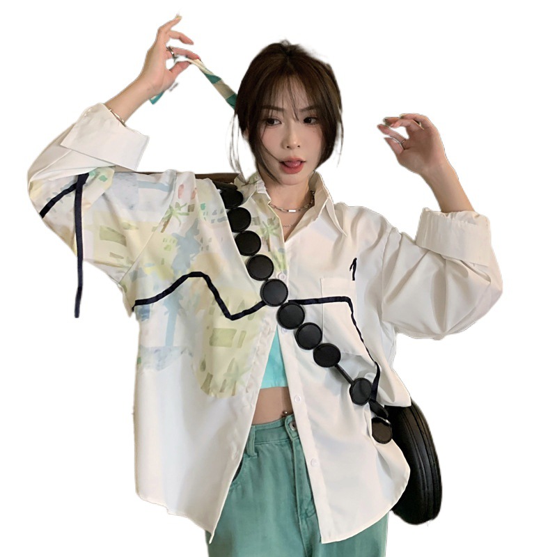 | nameOriginal | Spring New Design Sense Illustration Printed White Shirt Niche Loose Inner Stacked Long Sleeve Shirt |