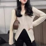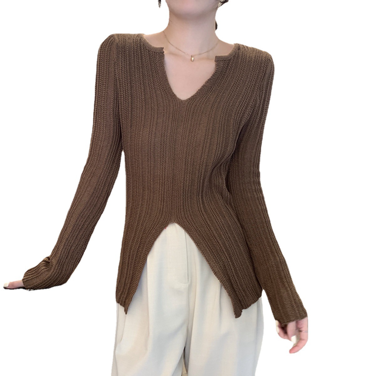 | nameOriginal | Spring New Design Sense V-neck Slim Sweater Solid Color Simple Casual Irregular Split Sweater Top for Women |
