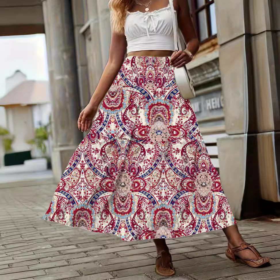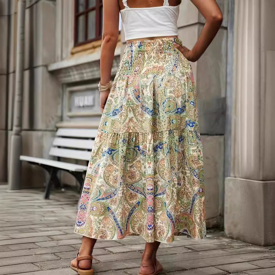 | nameOriginal | Spring New Foreign Trade plus size Women's Fresh Mori Style Floral Casual All-match Slim-fit Pleated High Waist Half-fit |