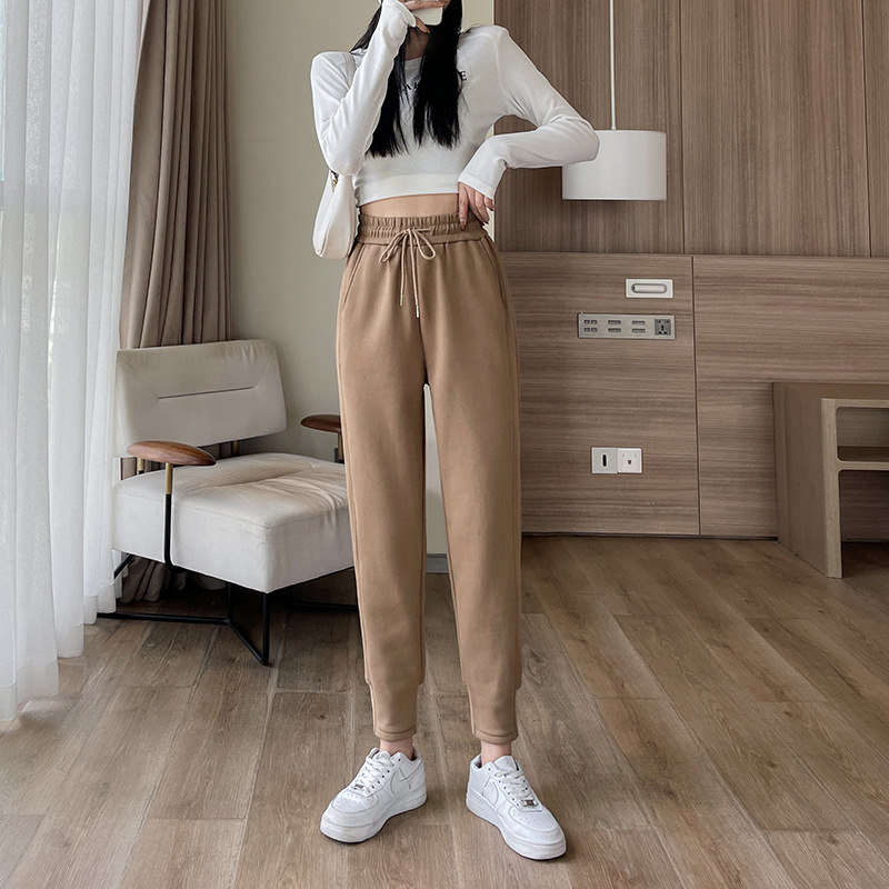 Spring New High Waist cropped harem pants sports pants women's cotton loose all-match casual pants ankle-tied sweatpants women