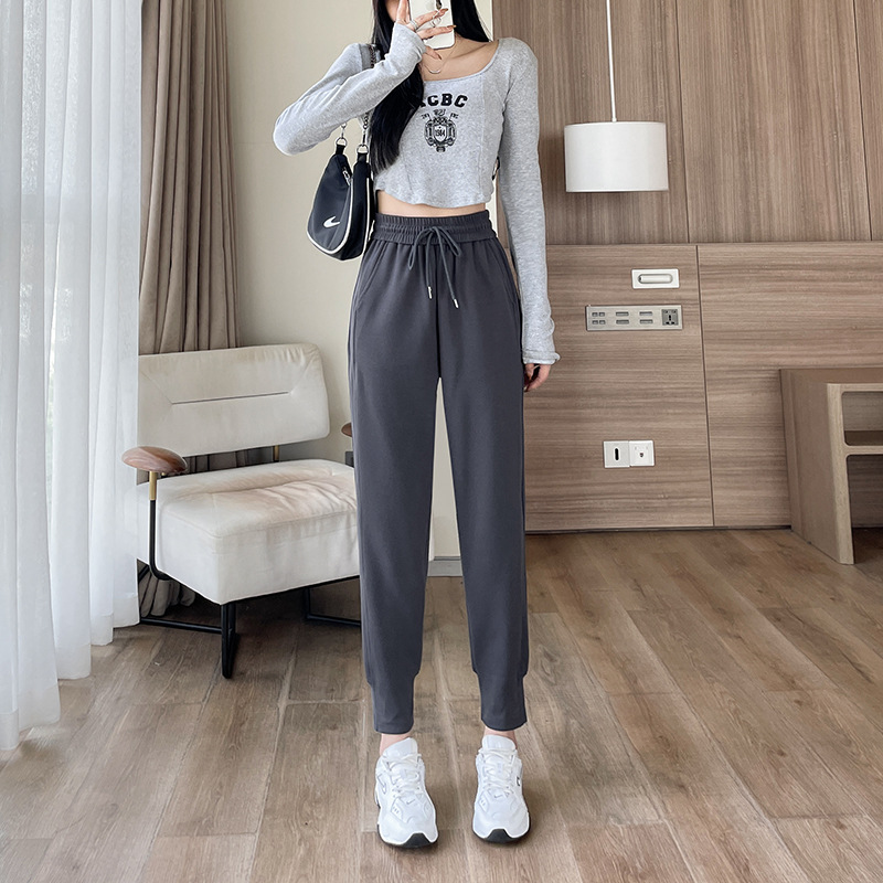 Spring New High Waist cropped harem pants sports pants women’s cotton loose all-match casual pants ankle-tied sweatpants women