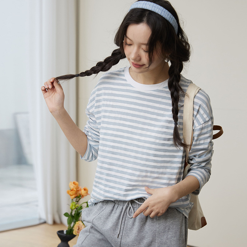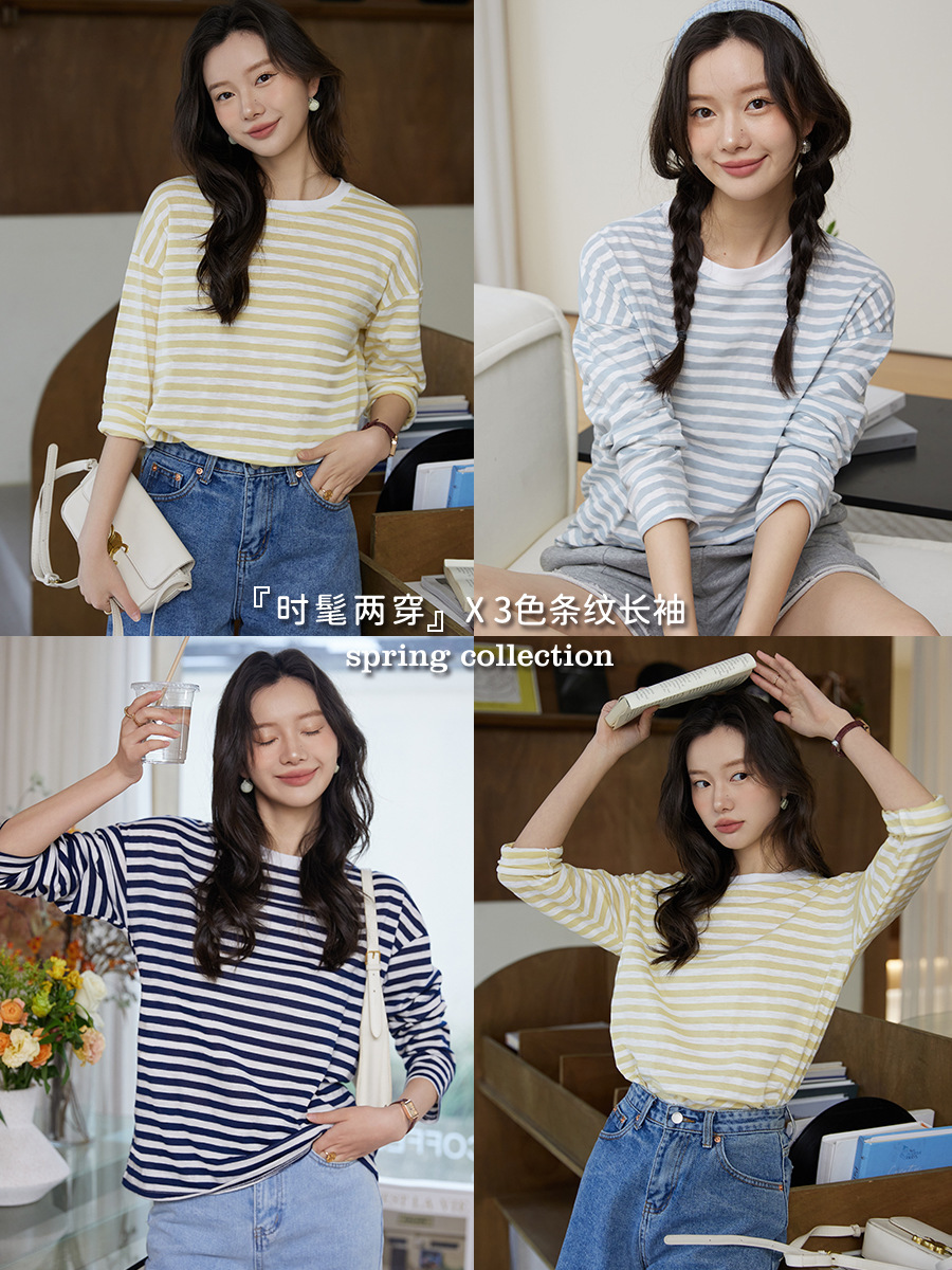 | nameOriginal | Spring New Long-sleeved Striped Base Shirt Women's Korean-style Casual Outer Top Round Neck Thin Slim-fit Pure Cotton T-shirt |
