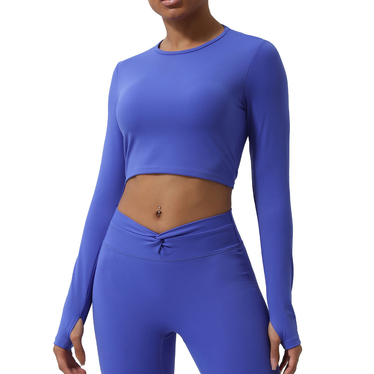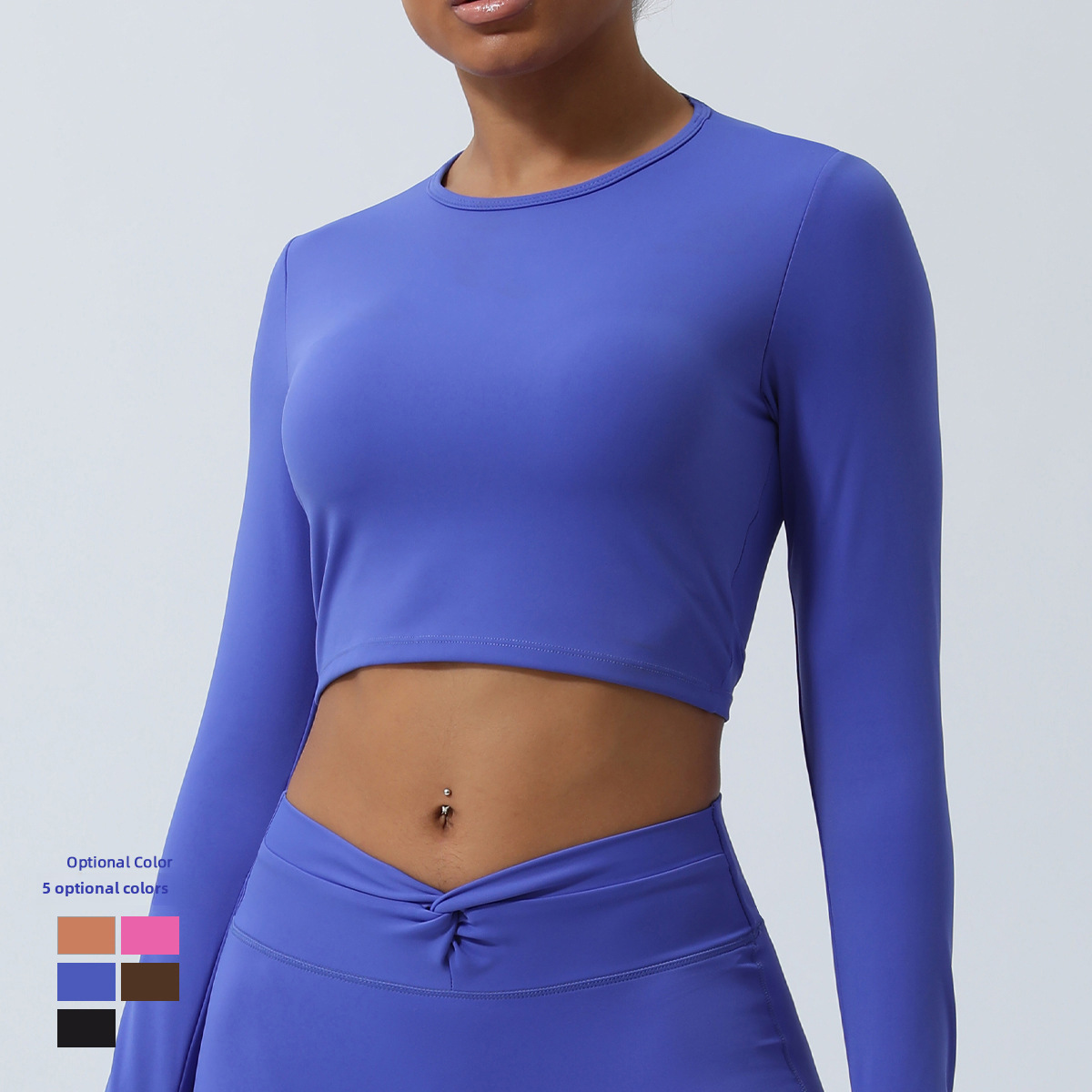 | nameOriginal | Spring New nude hollow-out beauty back sports top twisted short yoga clothes with chest pad long sleeve T-shirt workout clothes |