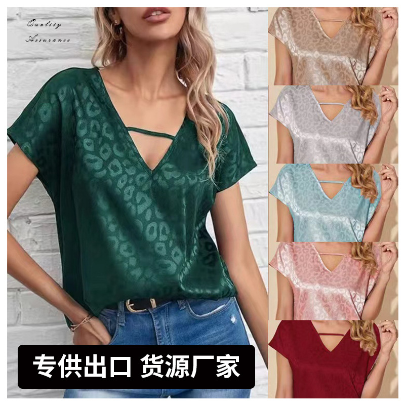 | nameOriginal | Spring New Satin V-neck Top Amazon Hot Women's Satin Top Loose European and American Women's Top |