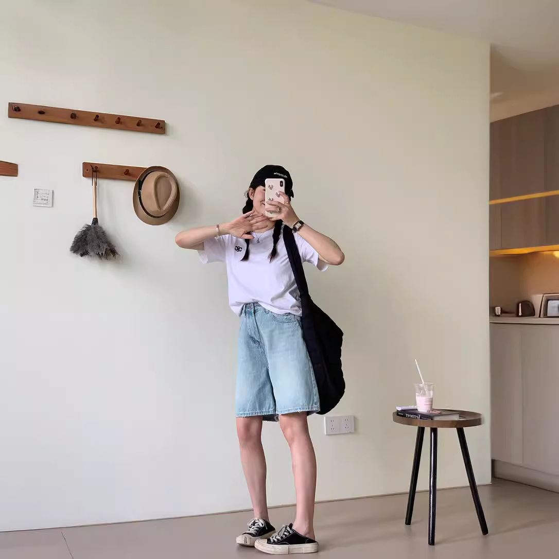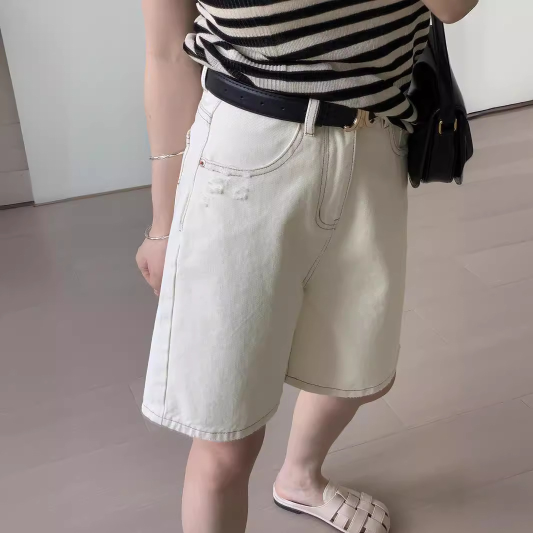 | nameOriginal | Spring Not Late Denim Shorts Women's 2024 Summer New Wide Leg Pants Slimming High Waist Thin light blue Five-point Pants |