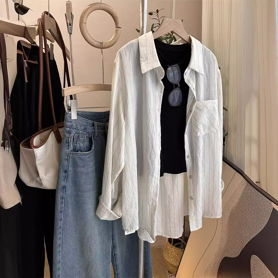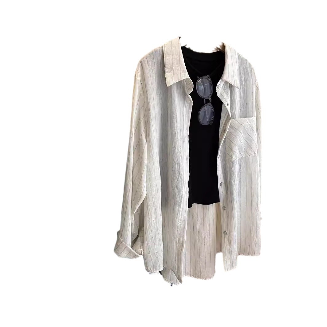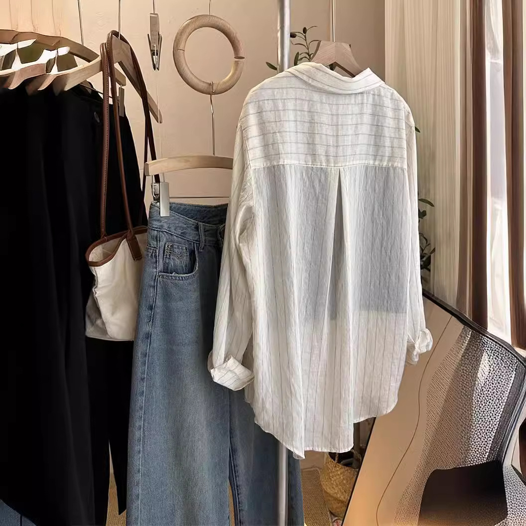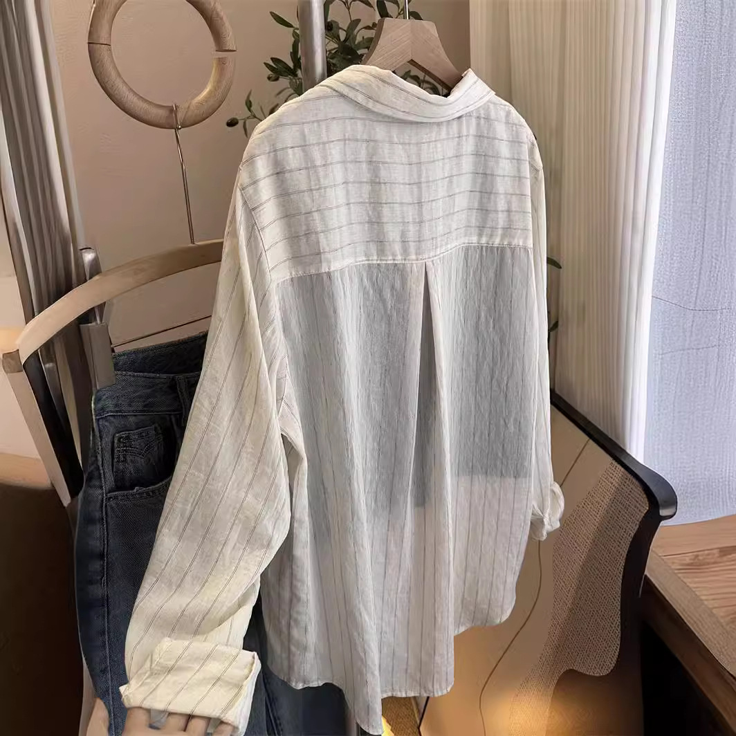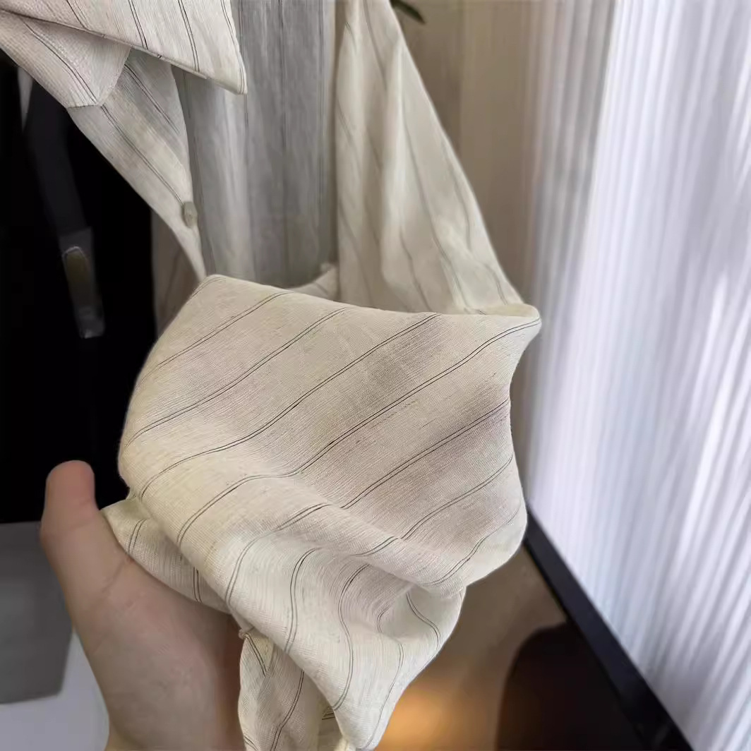 | nameOriginal | Spring Not Late New Light and Soft Linen Cool Vertical Stripe Loose Profile Shirt Top for Women 2024 Summer |