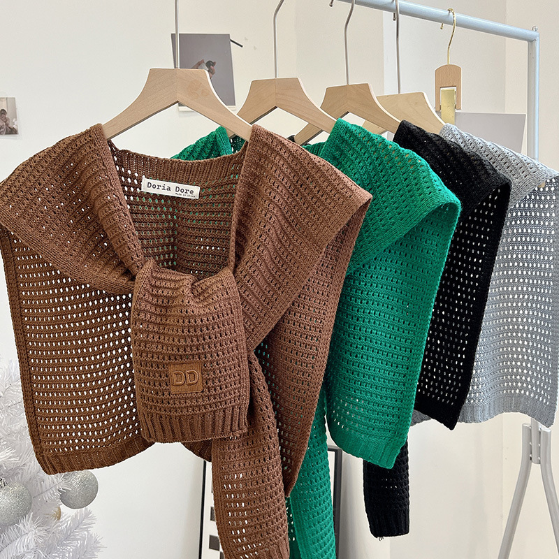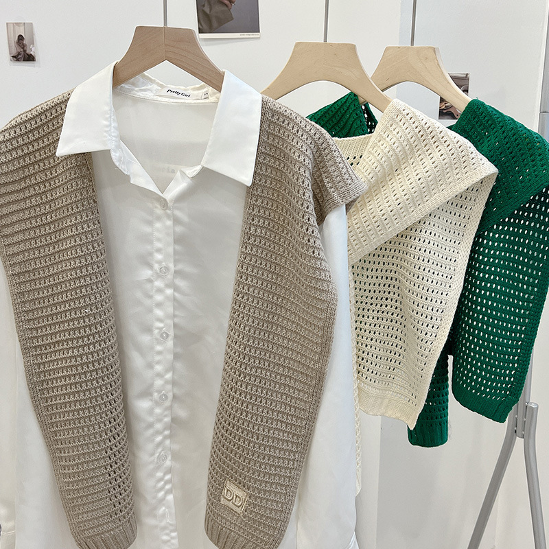 | nameOriginal | Spring off-white knitted shawl spring and autumn women's shirt Korean waistcoat small shawl hollowed-out summer fake collar |