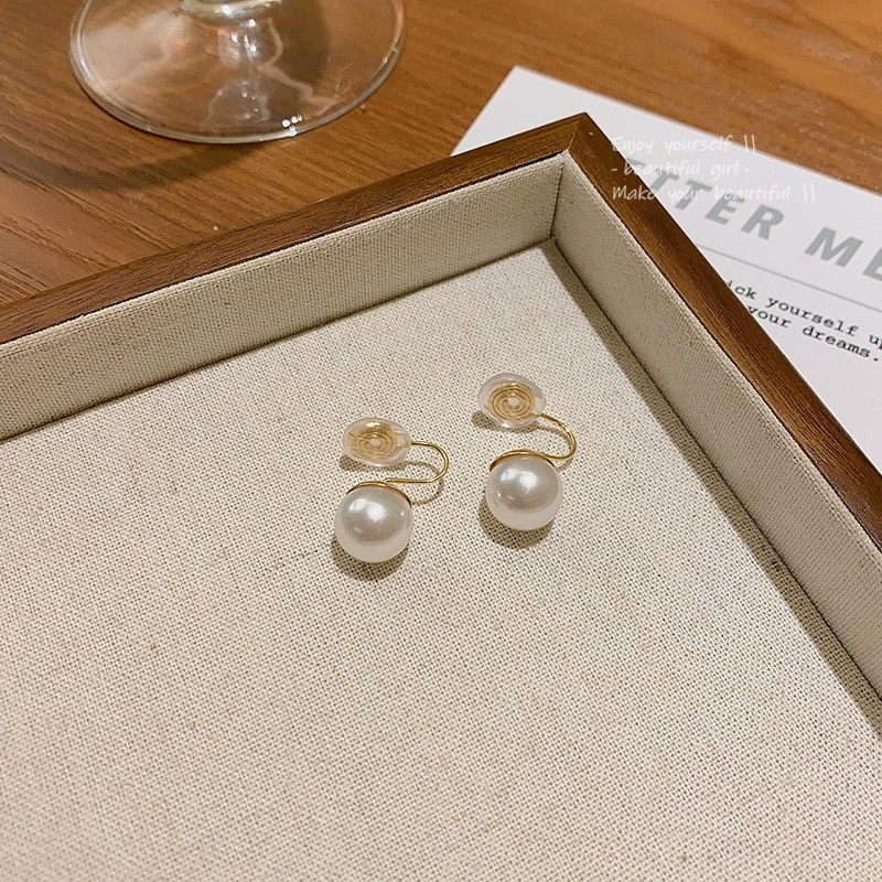 Spring plaid fever same style pearl earrings for women without pierced ear clips high-end fake earrings 2023 new earrings