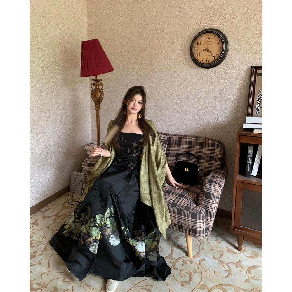 | nameOriginal | Spring printed bandeau horse skirt three-piece cardigan set |