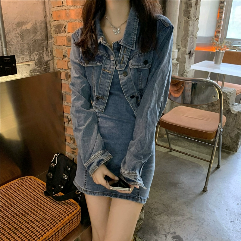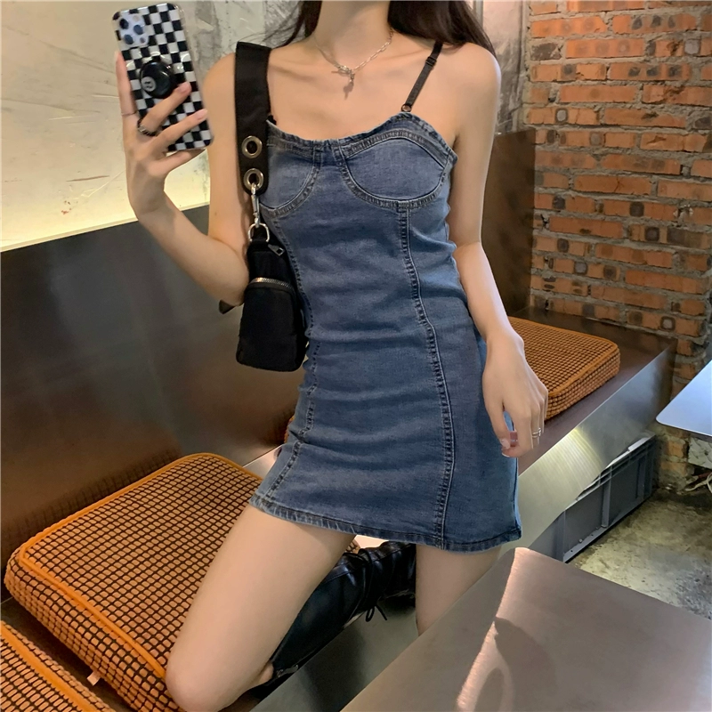 | nameOriginal | Spring slim fit hip-hugging suspender denim dress |