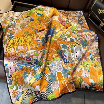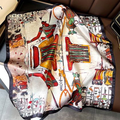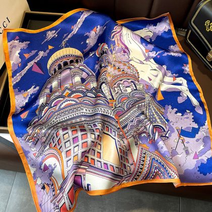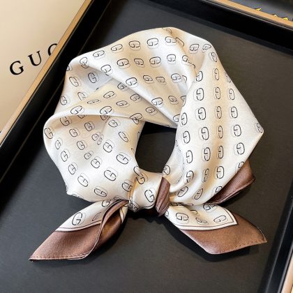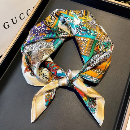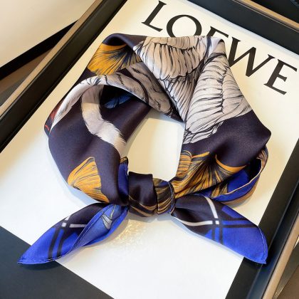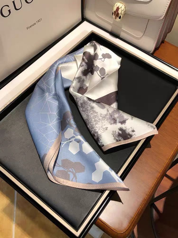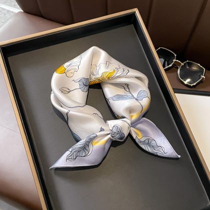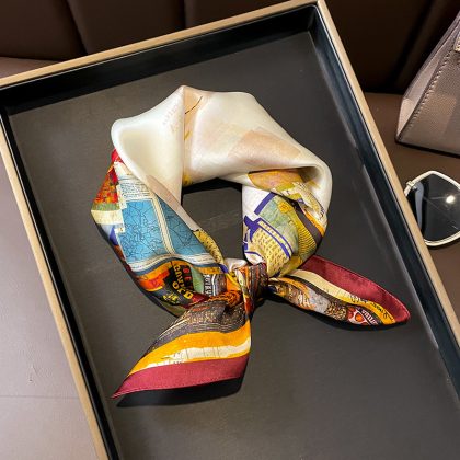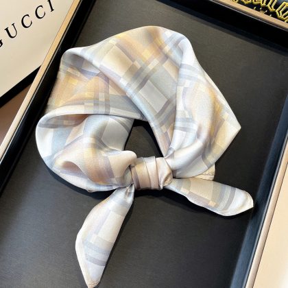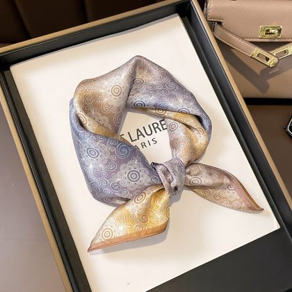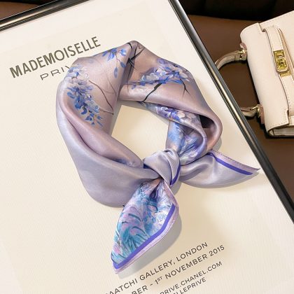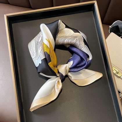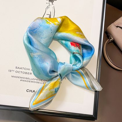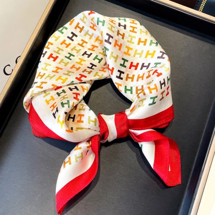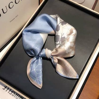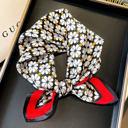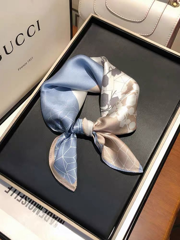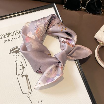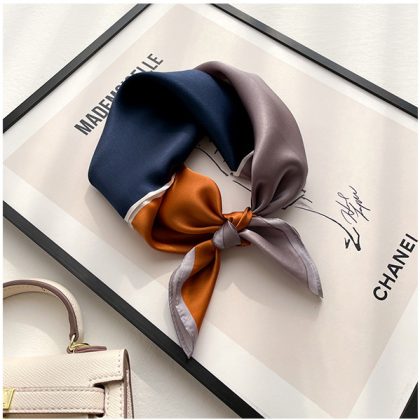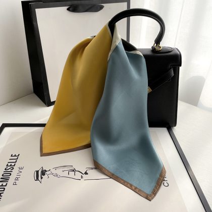 Spring South Korea small scarf versatile decorative geometric stitching silk scarf women’s hair band New mulberry silk scarf