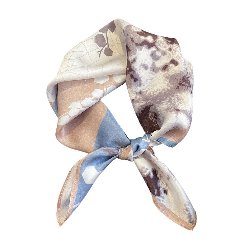 Spring South Korea small scarf versatile decorative geometric stitching silk scarf women's hair band New mulberry silk scarf