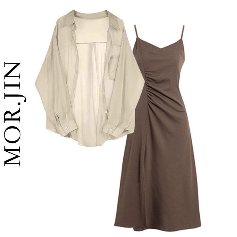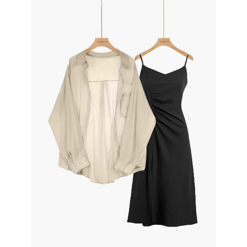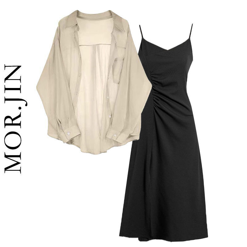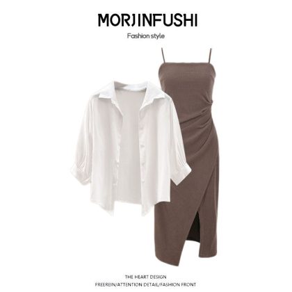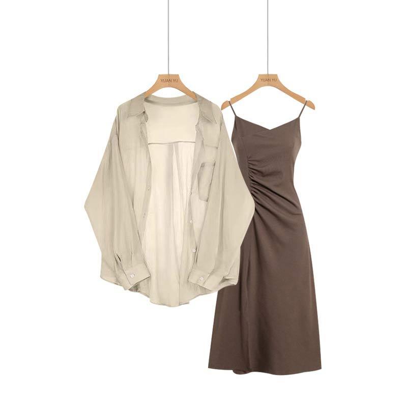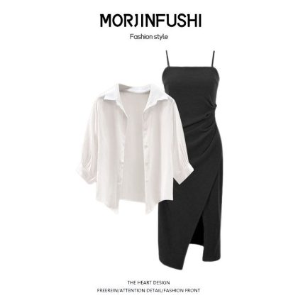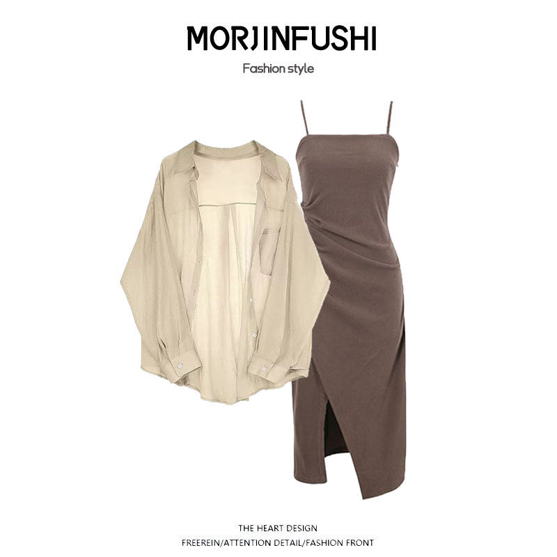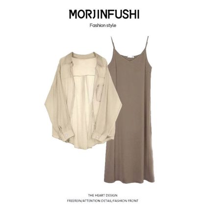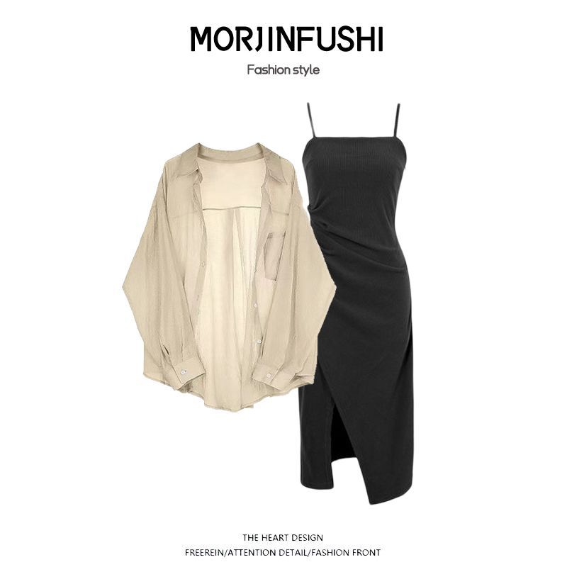 | nameOriginal | Spring Suit Women's 2024 New Fashionable Large Size Sunscreen Chiffon Shirt with Sling Dress Two-piece Set |
