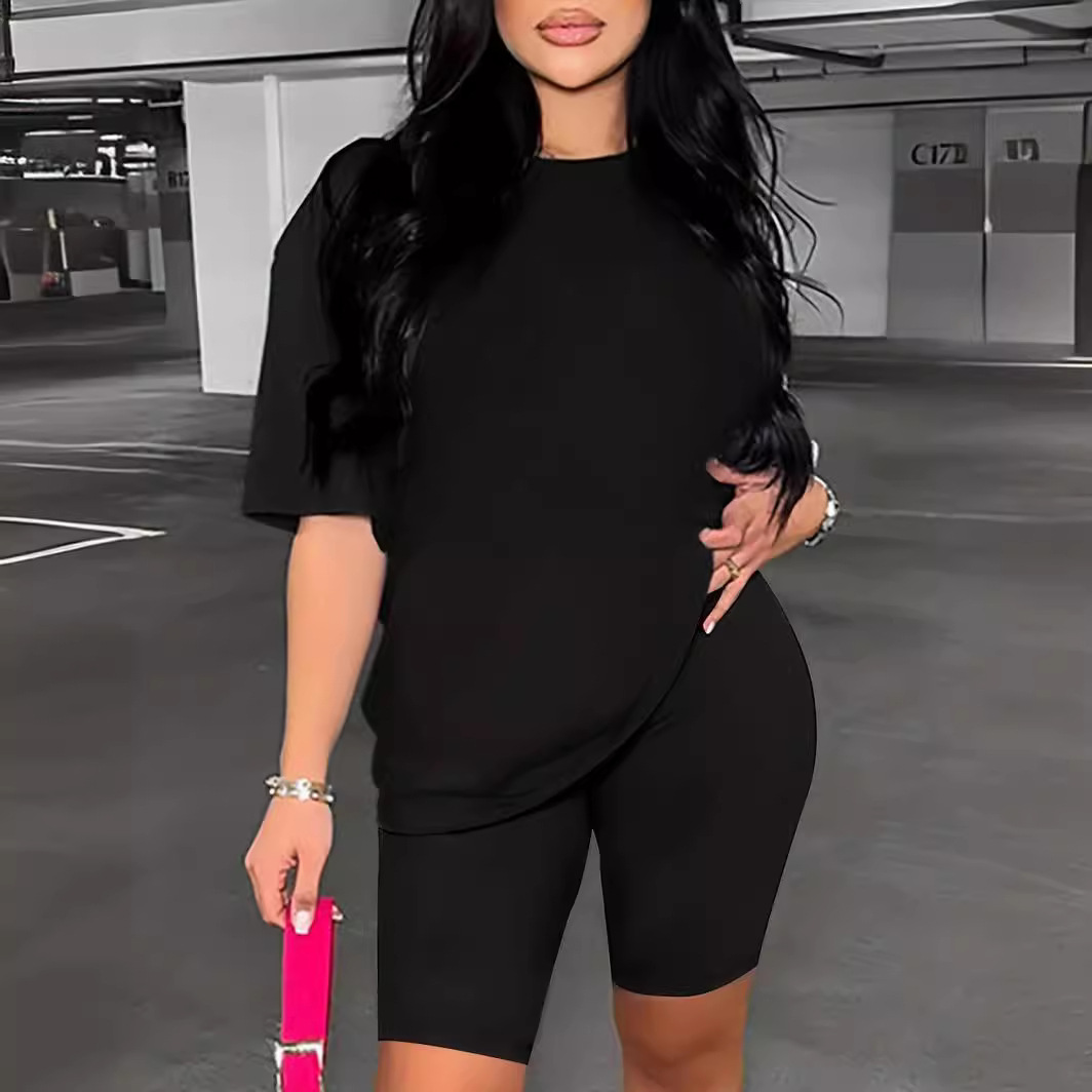| nameOriginal | Spring/Summer 2024 Solid Color Two-Piece Short-Sleeved Shoulder Casual T-Shirt and Tight Shorts Women's Clothing |