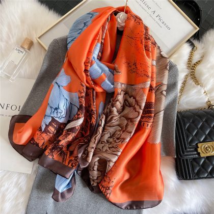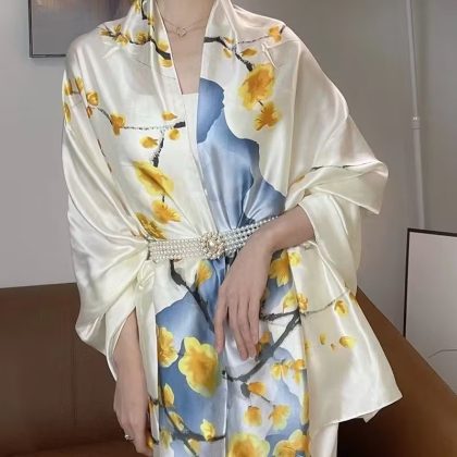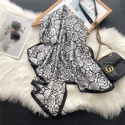 | nameOriginal | Spring, summer and autumn new Korean style floral plain and elegant high-end imitation silk scarf women's decorative shawl sunscreen beach towel |