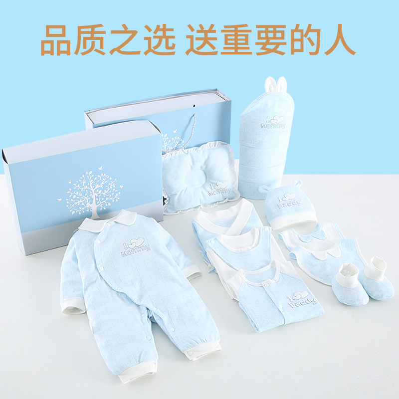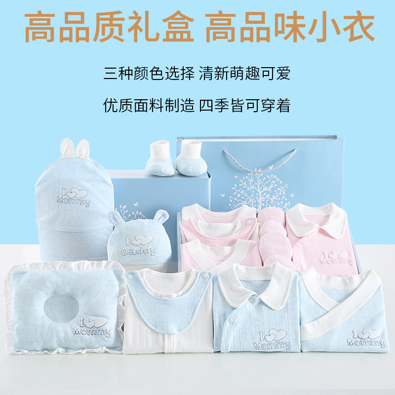 | nameOriginal | Spring, summer, autumn and winter color woven yarn baby cotton gift box baby supplies newborn baby Full Moon gift underwear set |