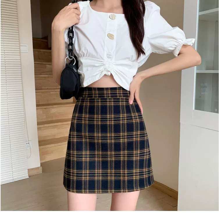 | nameOriginal | Spring, summer, autumn and winter plaid Korean style preppy A-line skirt |