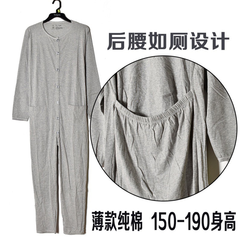 Spring Summer Autumn Long Short-sleeved Pajamas Home Clothes Men’s and Women’s Couple’s Air-conditioned Room Pajamas Jumpsuit
