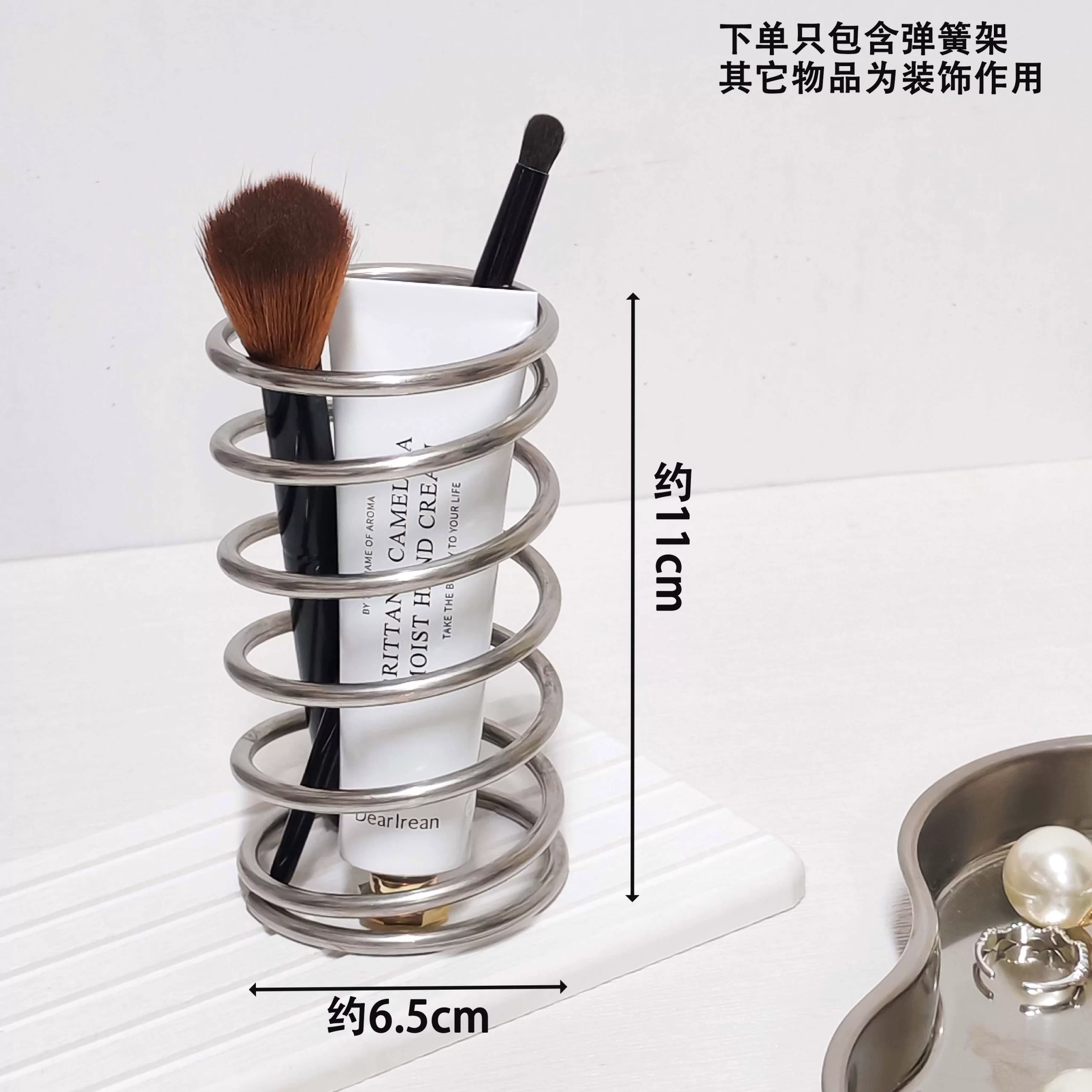 | nameOriginal | Spring toothbrush holder storage pen holder makeup brush bucket eyeliner storage rack metal dressing table storage rack ins style |