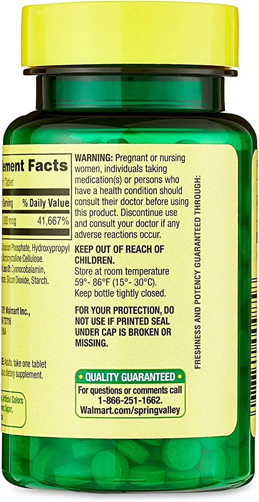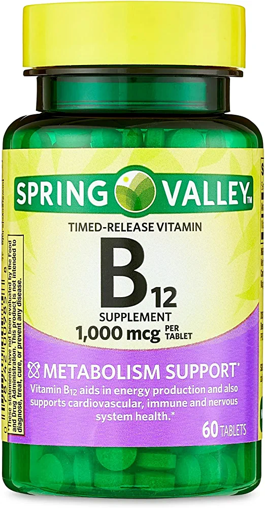 | descriptionOriginal | Description ✔️ Spring Valley Vitamin B12 Timed-Release Tablets Dietary Supplement is formulated for metabolism support. Each tablet delivers 1,000 micrograms of vitamin B12. ✔️Vitamin B12 aids in energy production and also supports cardiovascular, immune, and nervous system health. ✔️This formula gradually releases vitamin B12 over a period of time for better absorption. ✔️It is also free of gluten, sugar, lactose, artificial colors and flavors. |