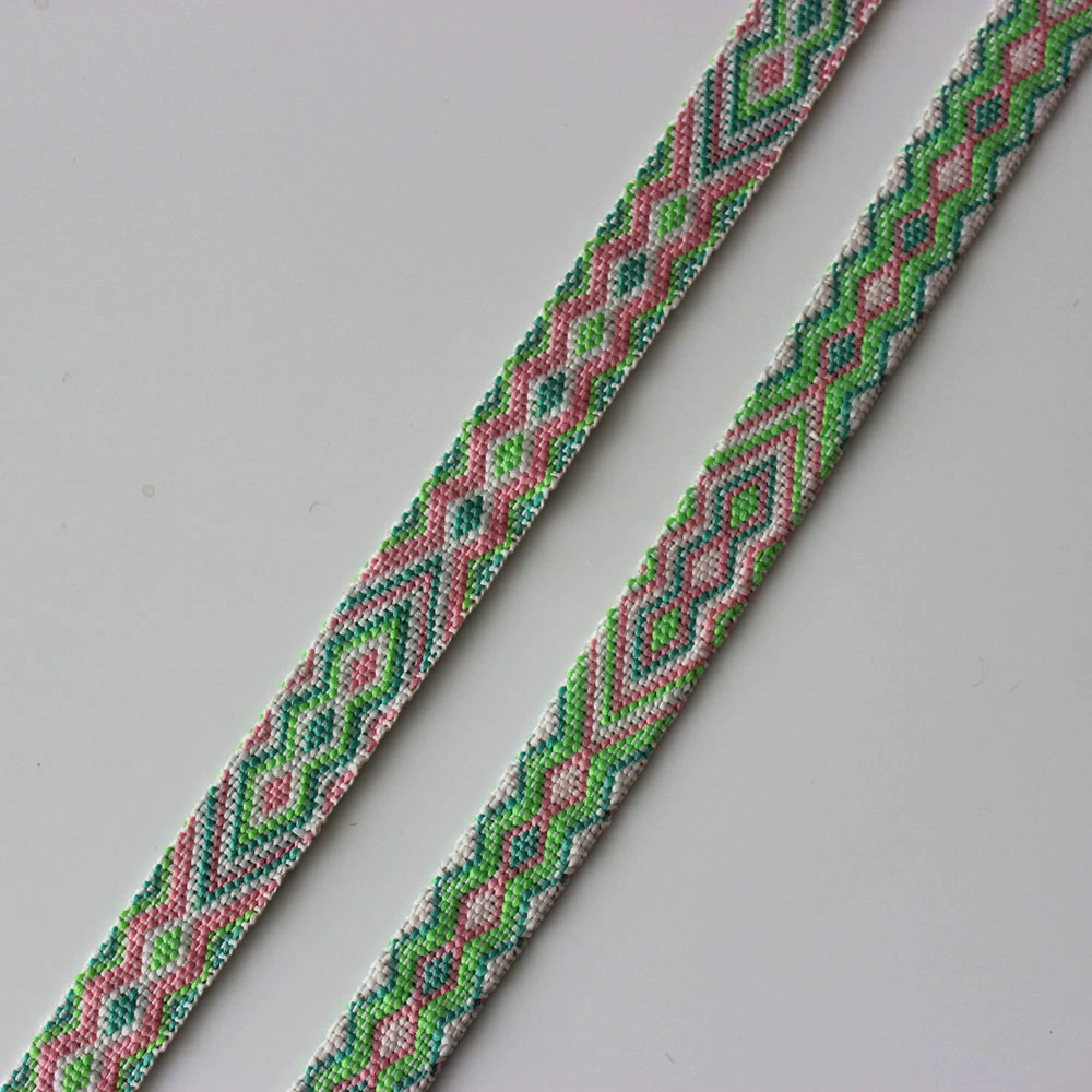 SpringNew Multicolor 1.3cm ethnic style jacquard flat rope webbing diamond embroidery belt handmade auxiliary materials