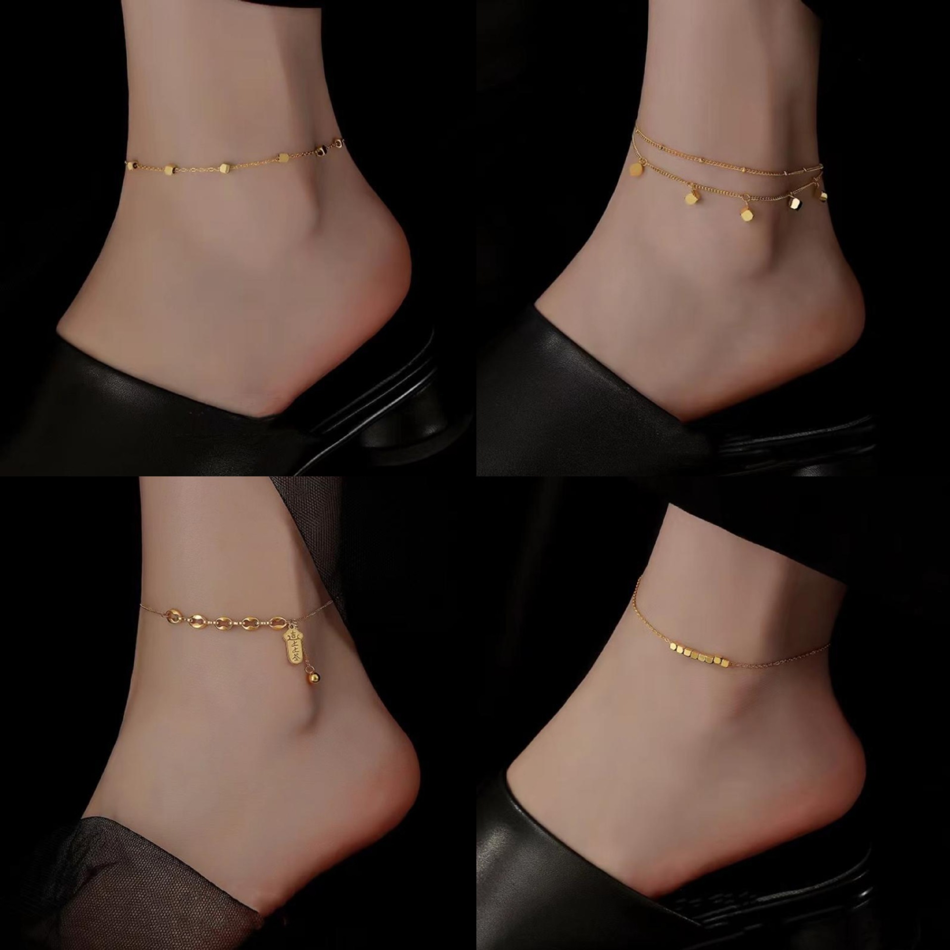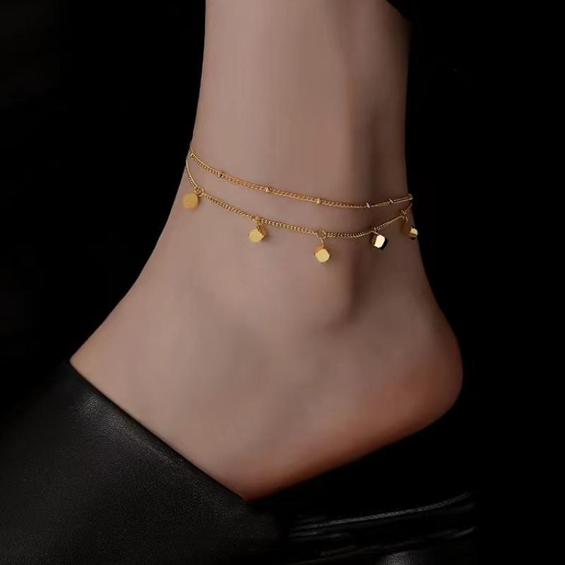 | nameOriginal | Square Ankle Chain Women's Trendy Ins Niche Double-layer Design Light Luxury High-grade Spring Titanium Steel Color-free Foot Chain |
