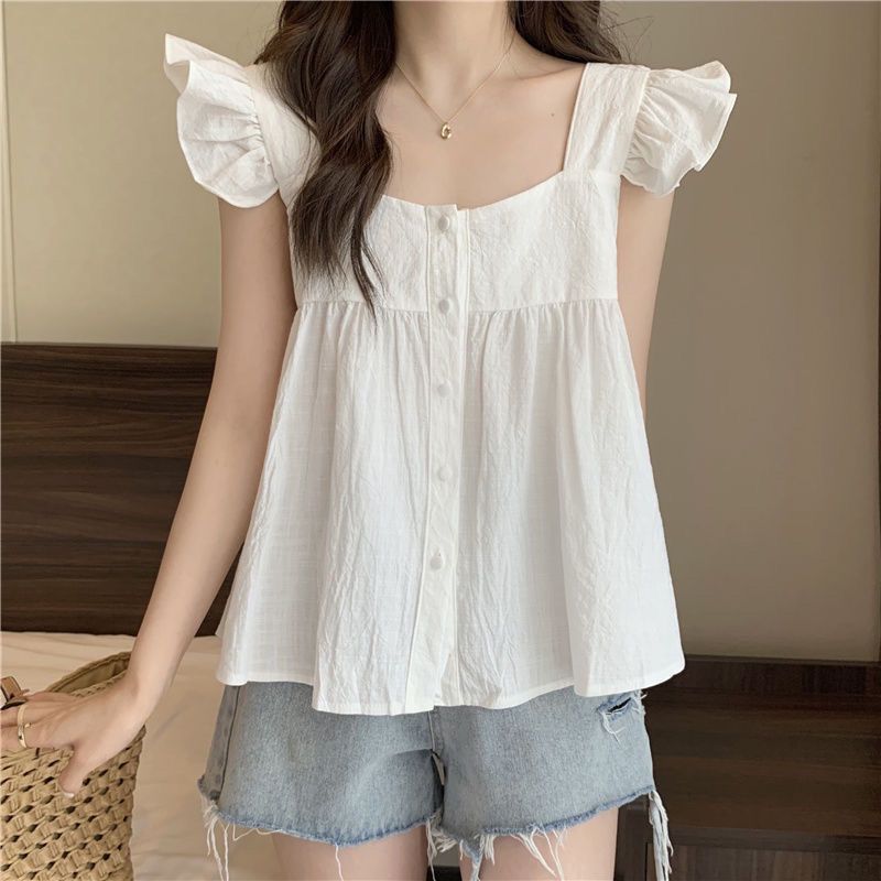 | nameOriginal | Square Collar Collarbone Sleeveless Shirt Women's Summer French Style Elegant Chic Loose Short Doll Shirt Small Flying Sleeve Top |