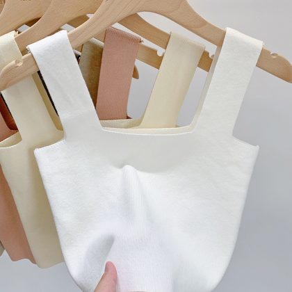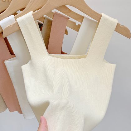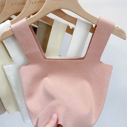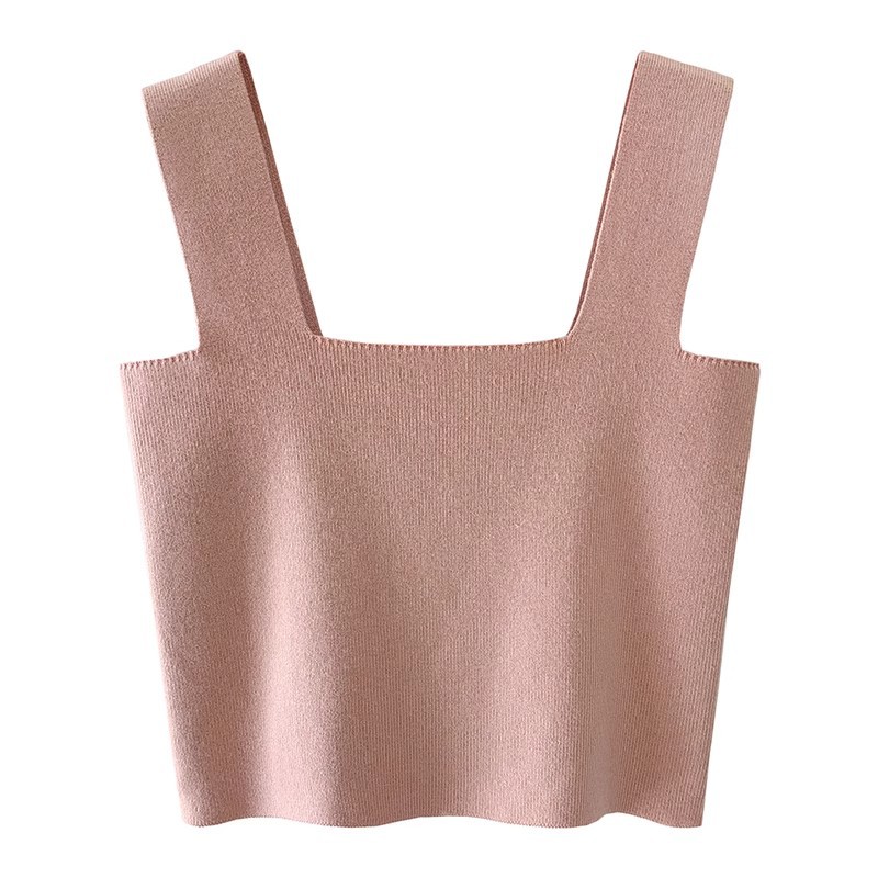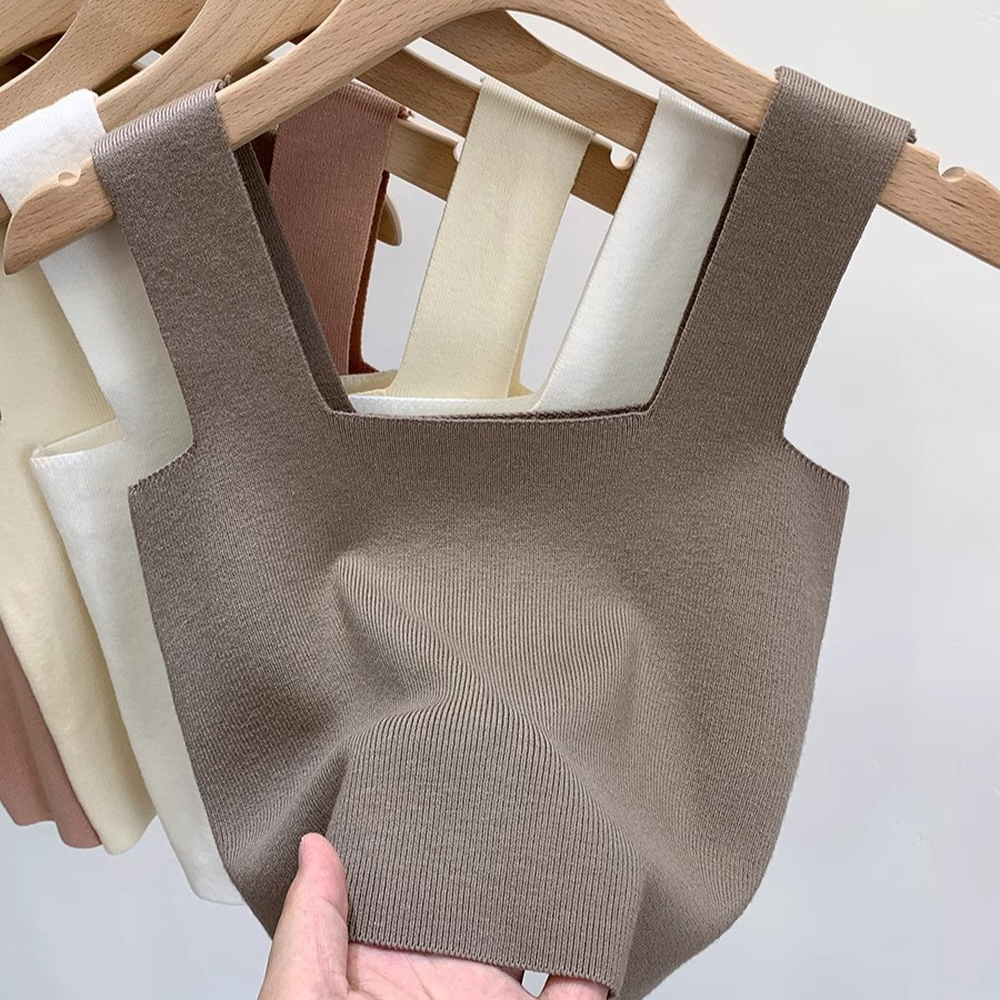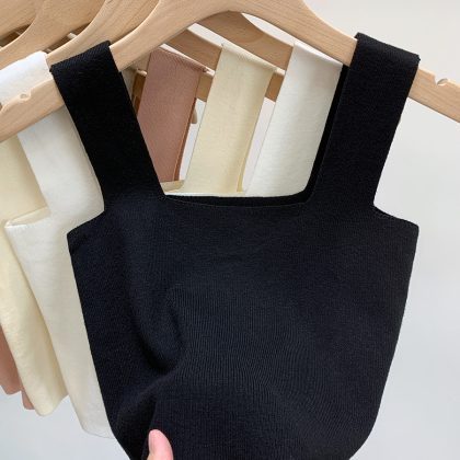 Square Collar Knitted Small Camisole Women’s Inner Base Shirt Outer Wear Beautiful Back Sleeveless Short Strapless Top