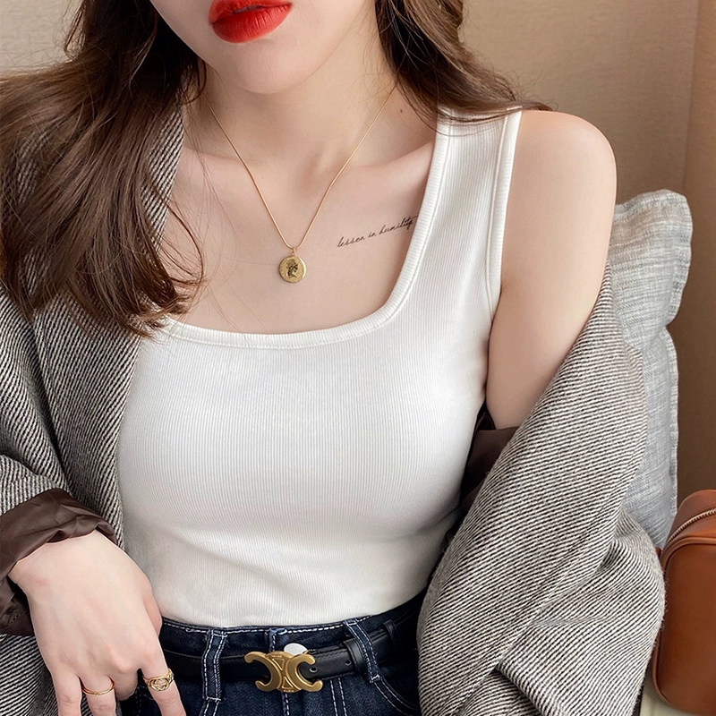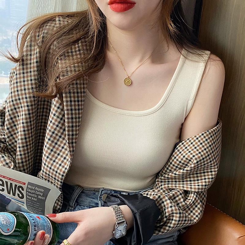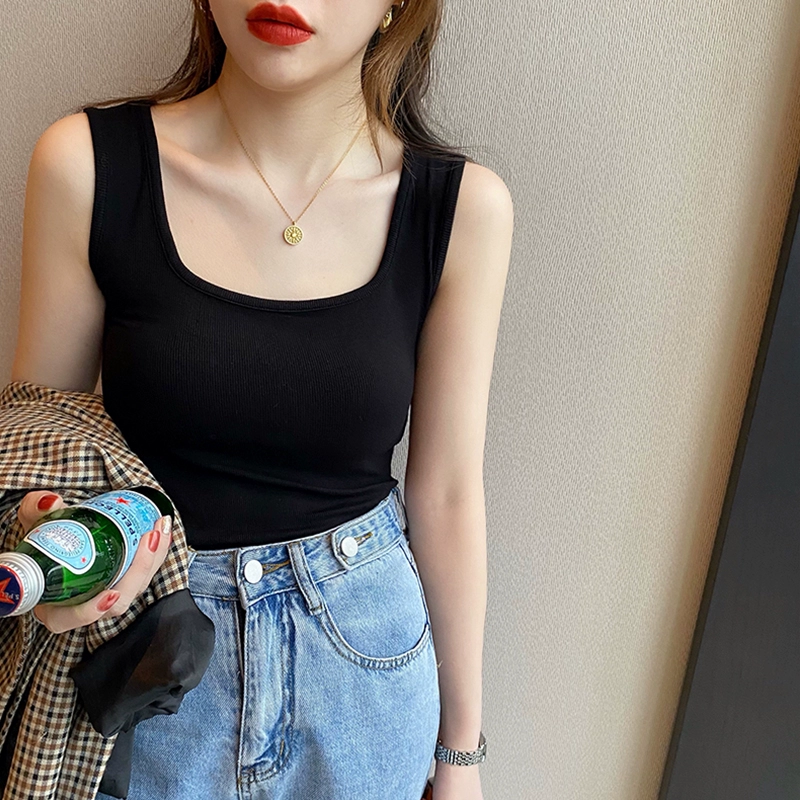 | nameOriginal | Square collar large size vest women's summer outer suit with bottoming shirt knitted sleeveless wideband small suspender fat mm top |