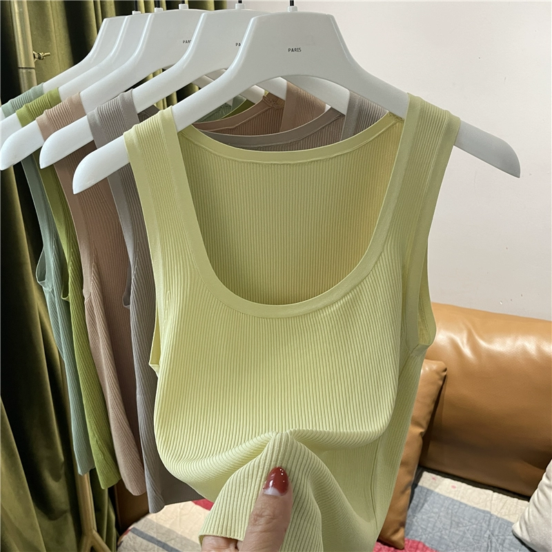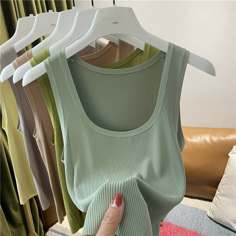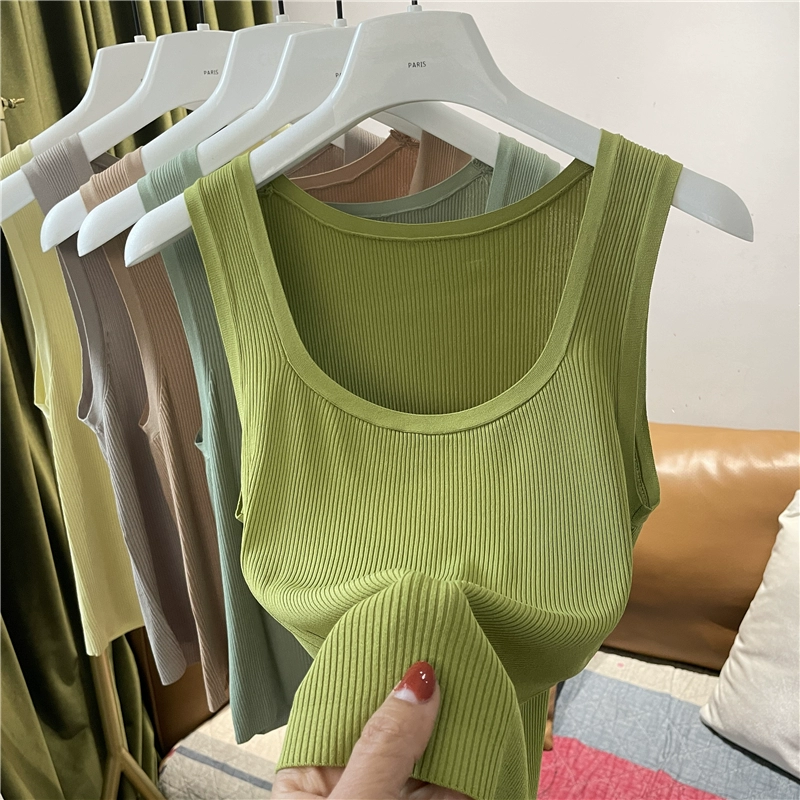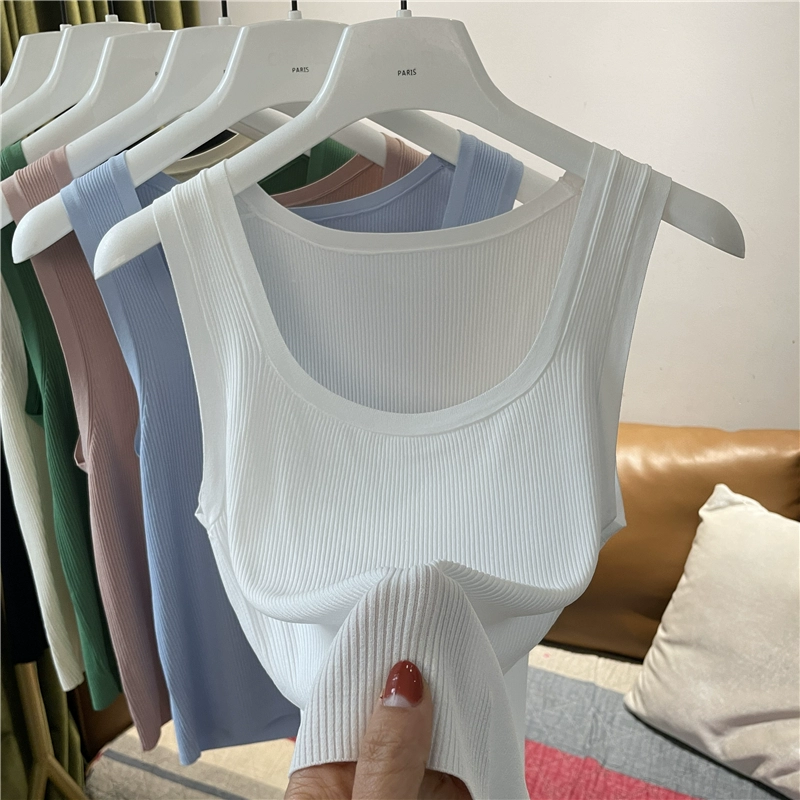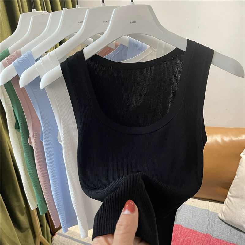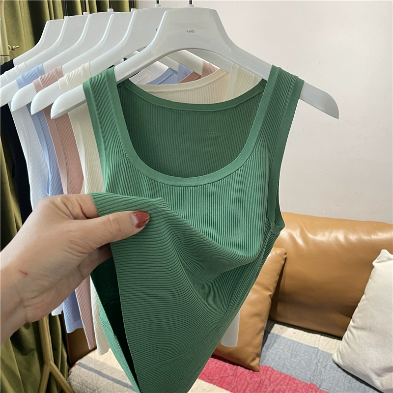 Square collar short ice silk knitted vest for women with exposed clavicle, slimming inside and outside, slim bottoming shirt, sleeveless suspenders