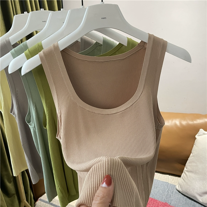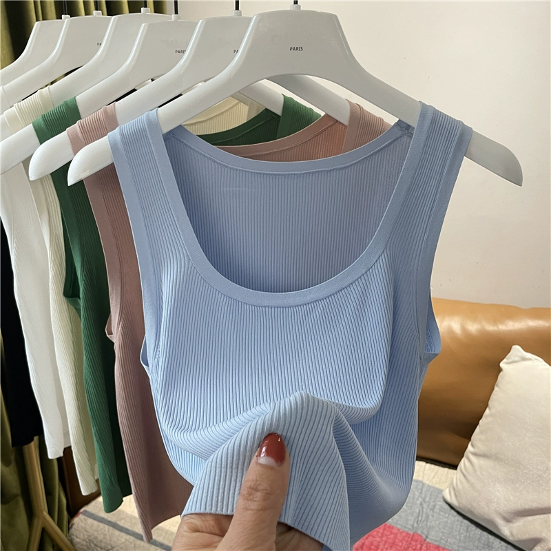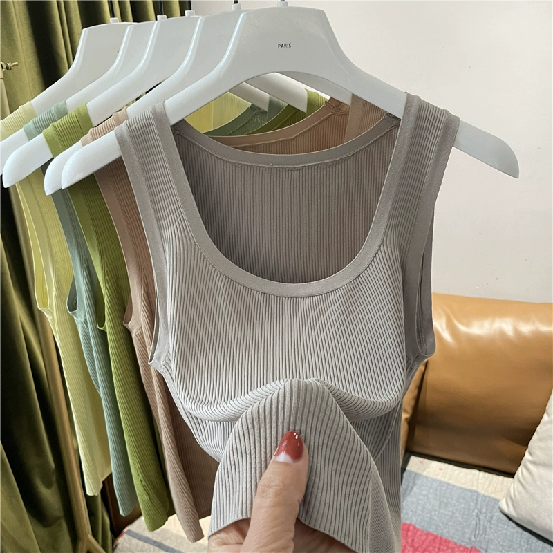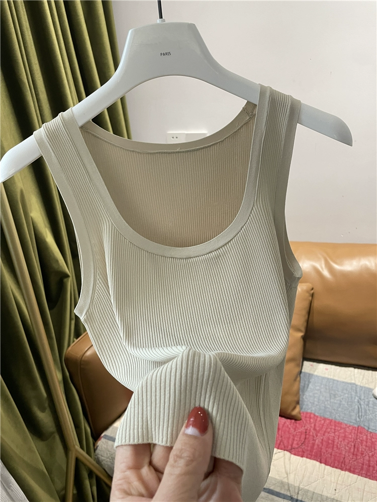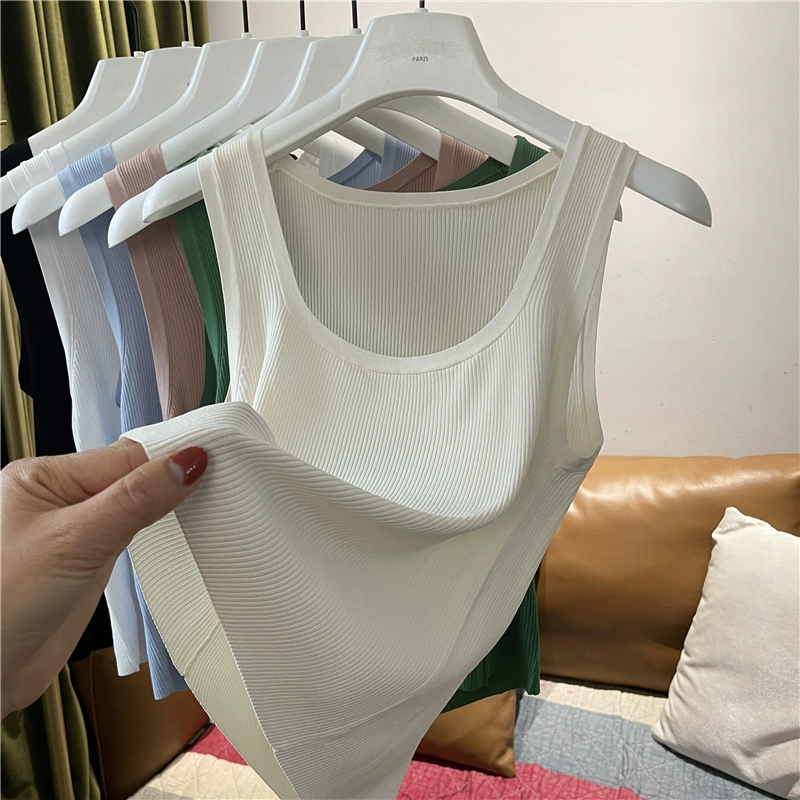 Square collar short ice silk knitted vest for women with exposed clavicle, slimming inside and outside, slim bottoming shirt, sleeveless suspenders