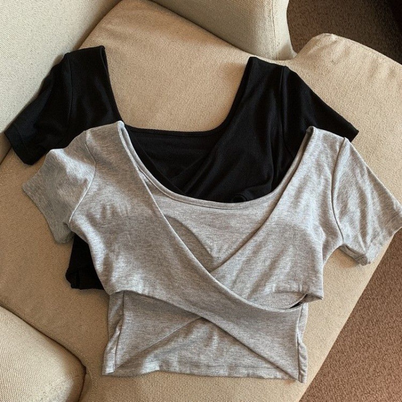 | nameOriginal | Square Collar Short-Sleeve Shirt Women's Summer Sexy Strap Chest Pad Backless Pure Spice Girls Shoulder Short Black Top |