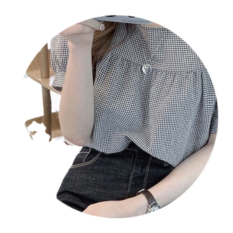 Square Collar Short-sleeved Shirt Women’s Summer New Japanese Style Sweet Age-reducing Fresh Style Joker Small Plaid Clavicle Top