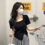 Square Collar Short Top Women’s Design Sense Niche 2024 Summer New Irregular Slimming Shoulder Short Sleeve Tide T-shirt