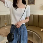 | nameOriginal | Square collar spring and summer ice silk slim fit ins trendy short sleeves |
