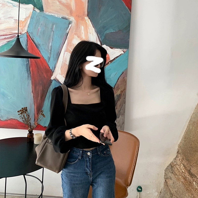 | nameOriginal | Square collar spring retro Hong Kong style leaky clavicle long-sleeved top |