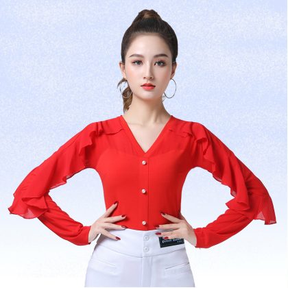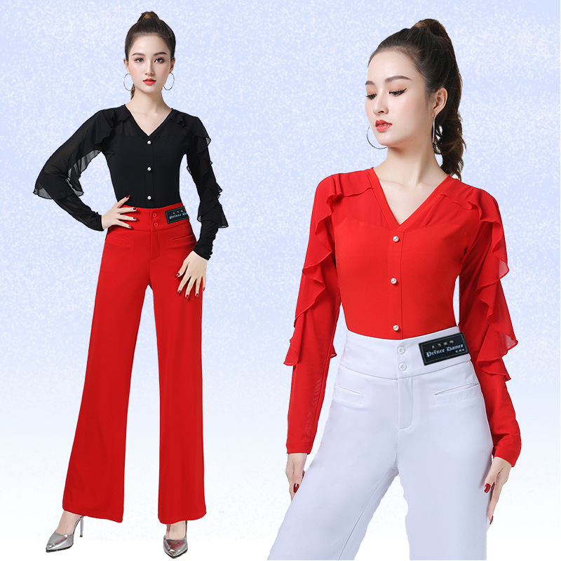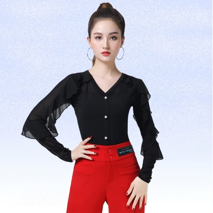 | nameOriginal | Square Dance Modern Dance Top New Women's Black Red Lotus Leaf Long Sleeve Clothes Elegant Jitterba Latin Dance Clothes |