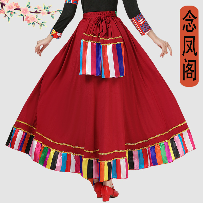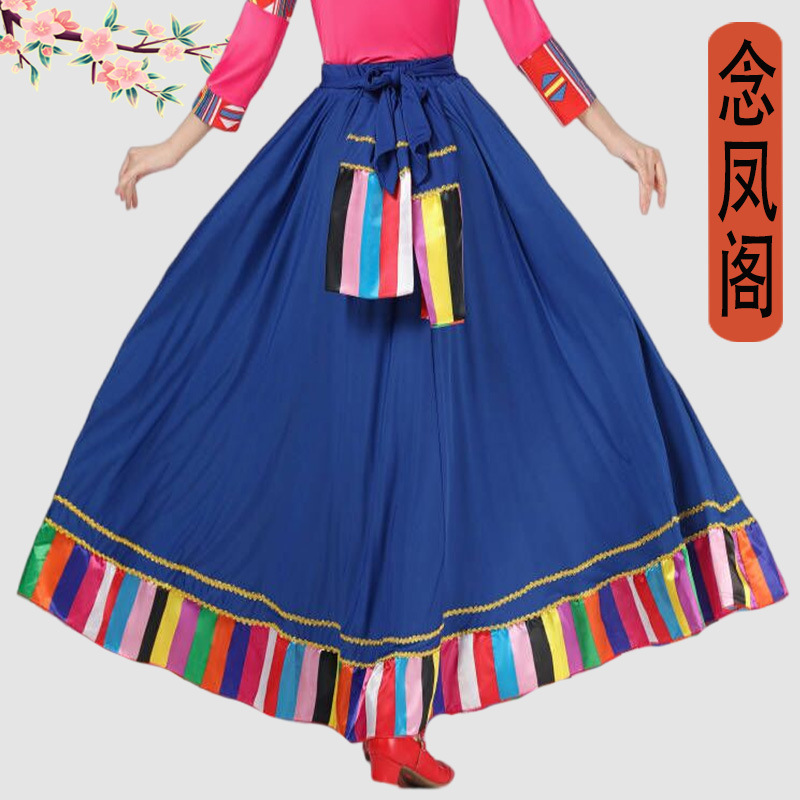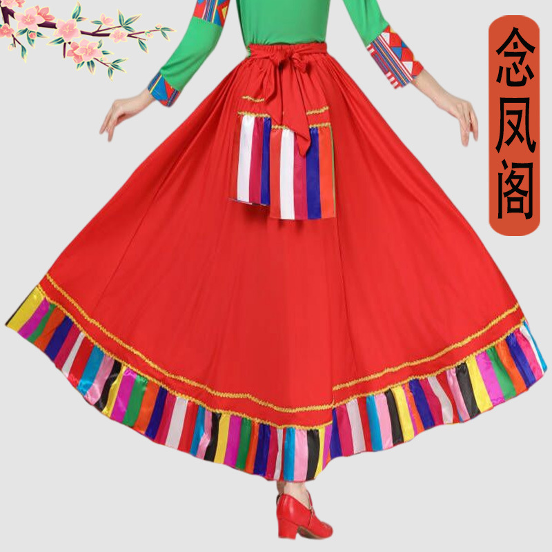 | nameOriginal | Square dance Tibetan dance performance costume female ethnic style large swing skirt classical dance art exam practice half-length practice skirt |