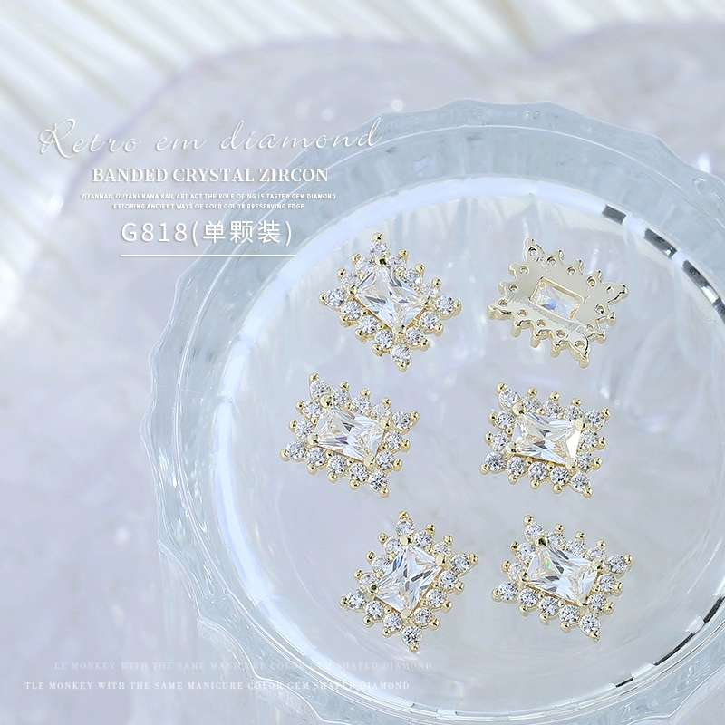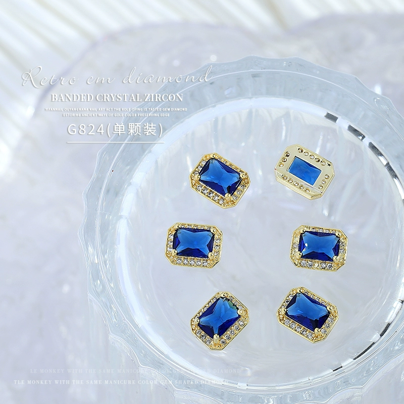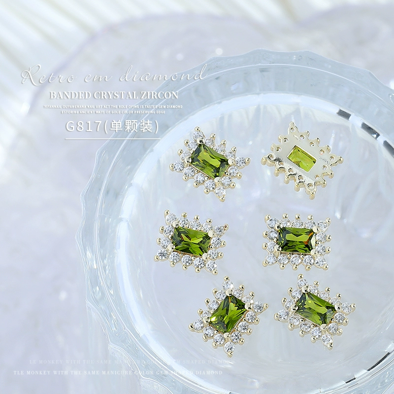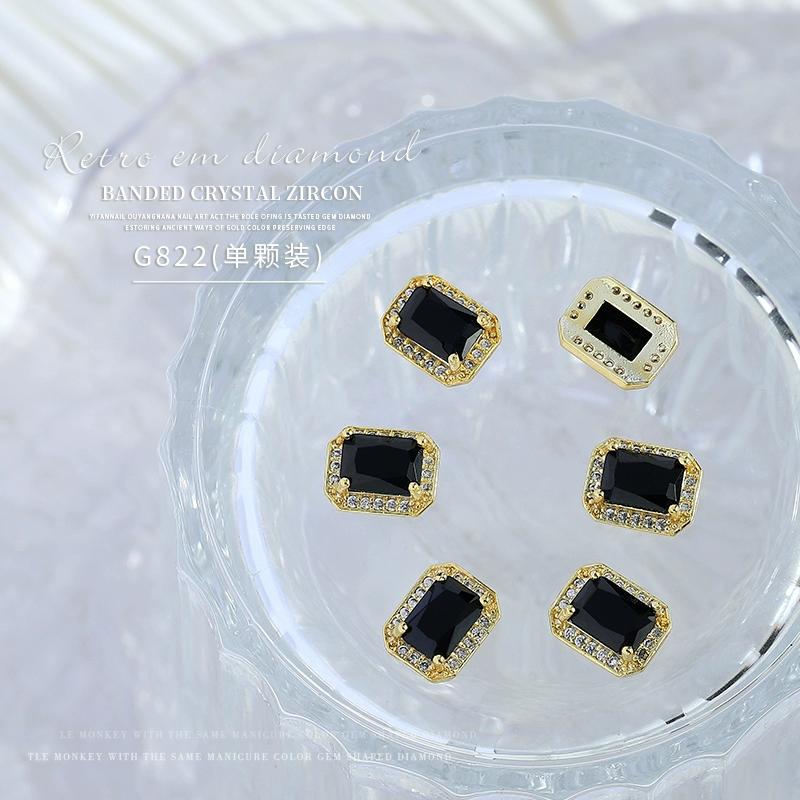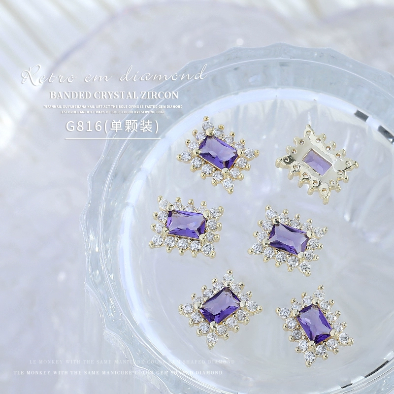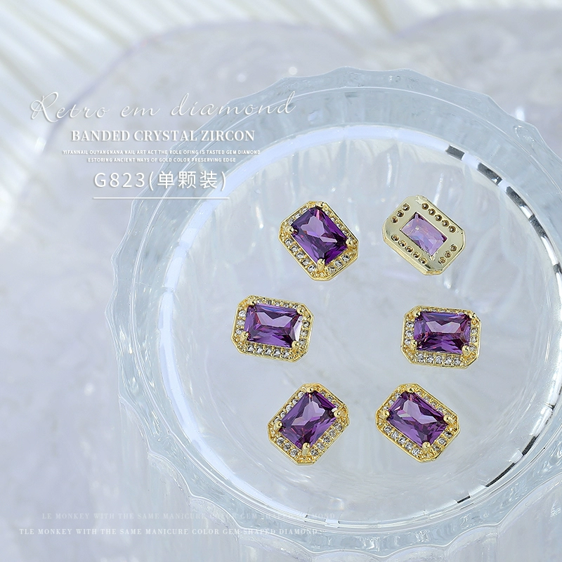 Square Elf Light Luxurious Gemstone Colored Diamond Trim Nail Art