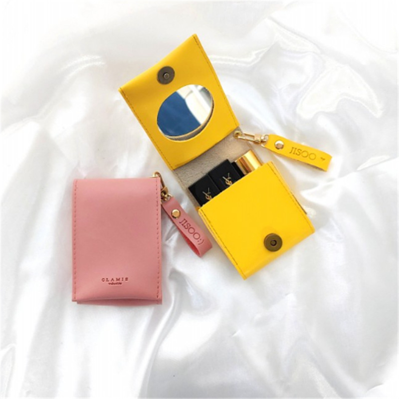 | nameOriginal | Square leather lipstick bag with mirror flip coin purse lipstick box portable keychain lip glaze bag |