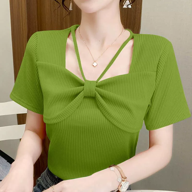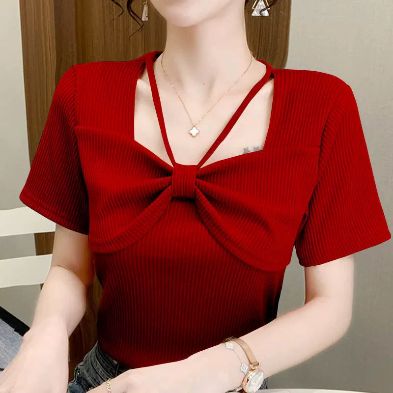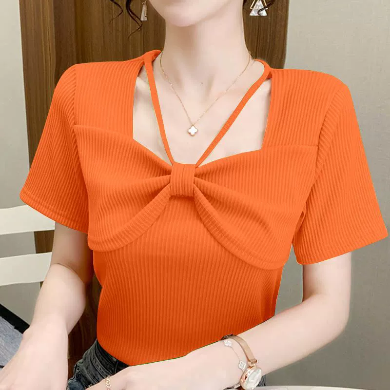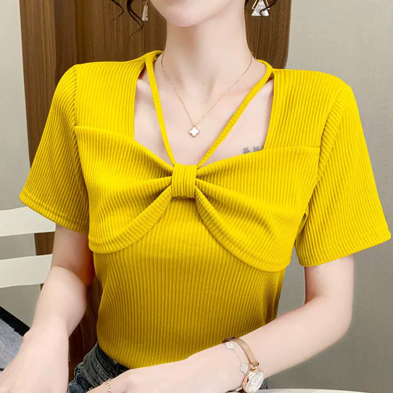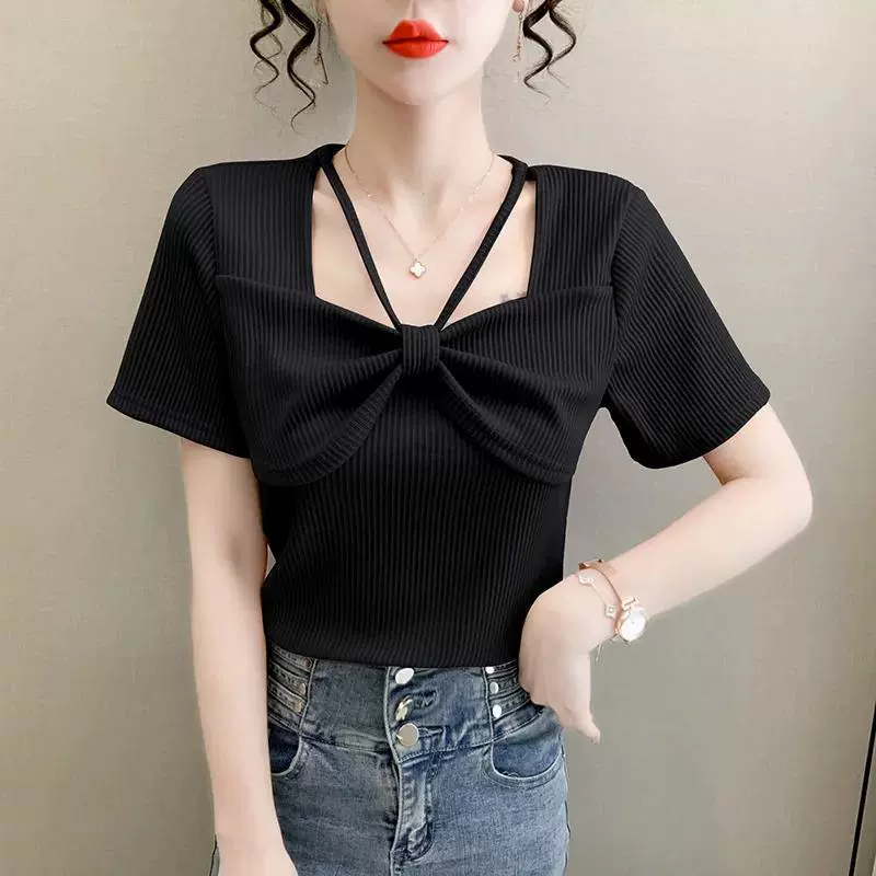 | nameOriginal | Square neck bow slimming ins short-sleeved T-shirt |