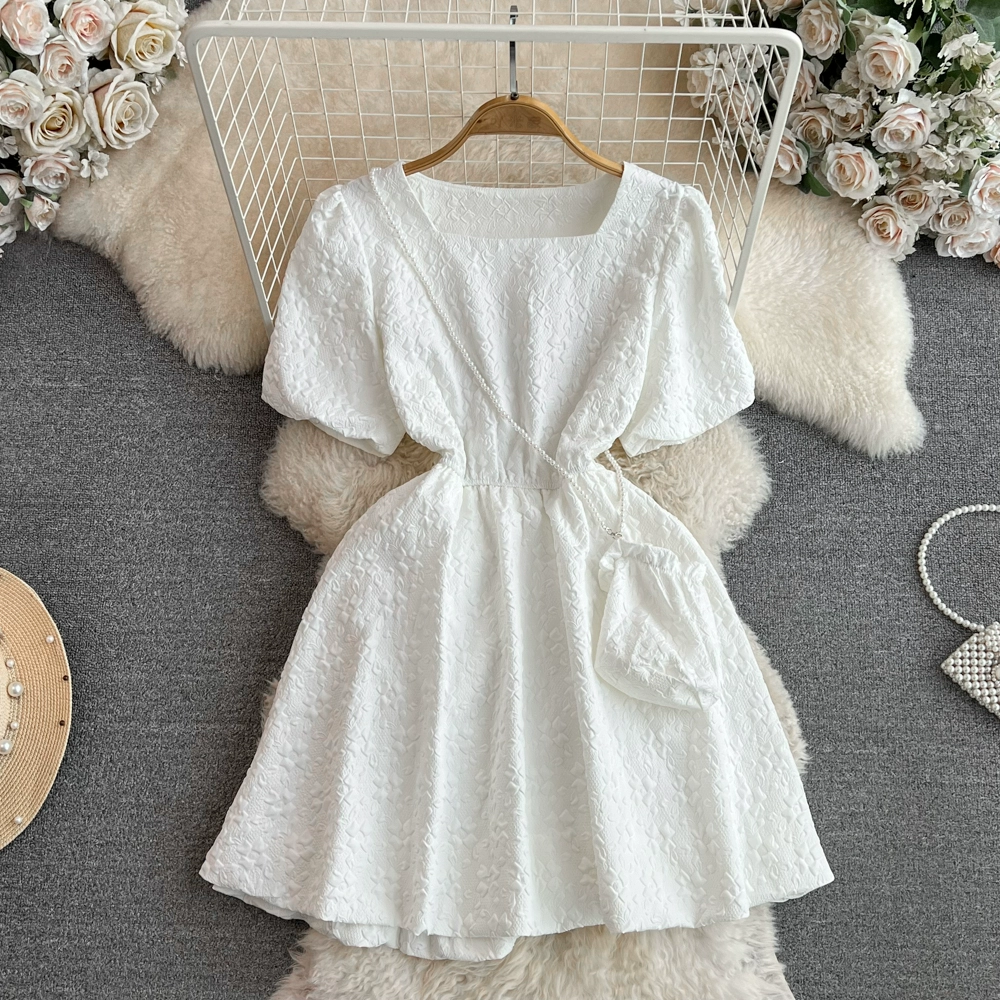 | nameOriginal | Square neck puff sleeve summer forest A-line dress |