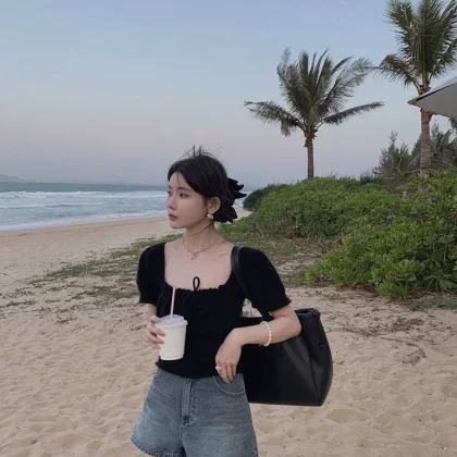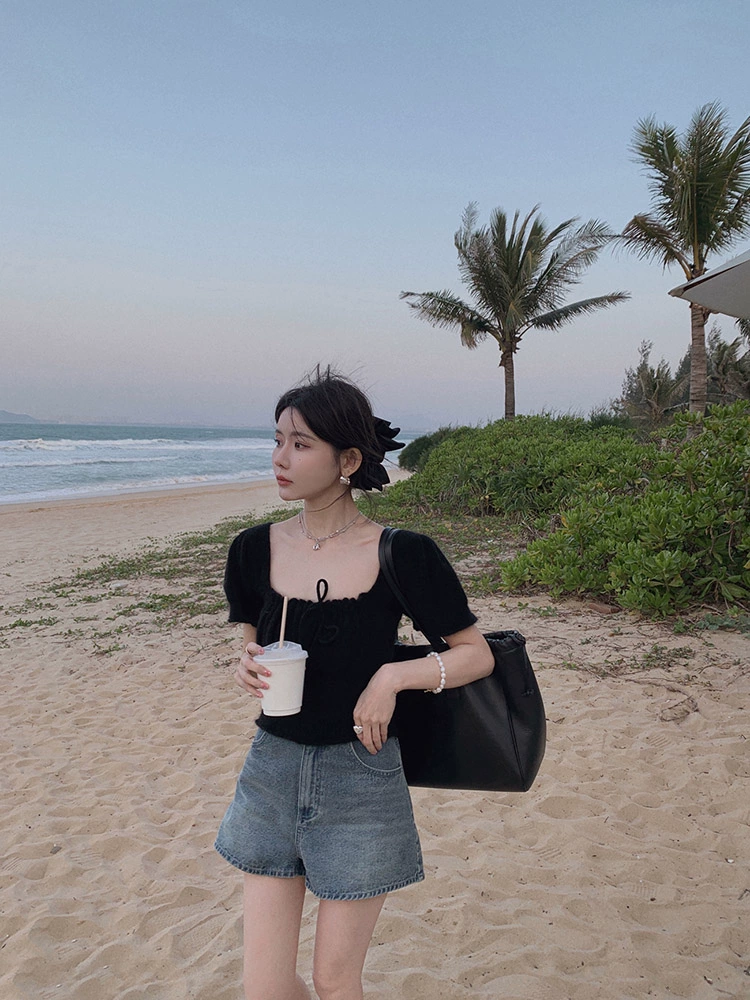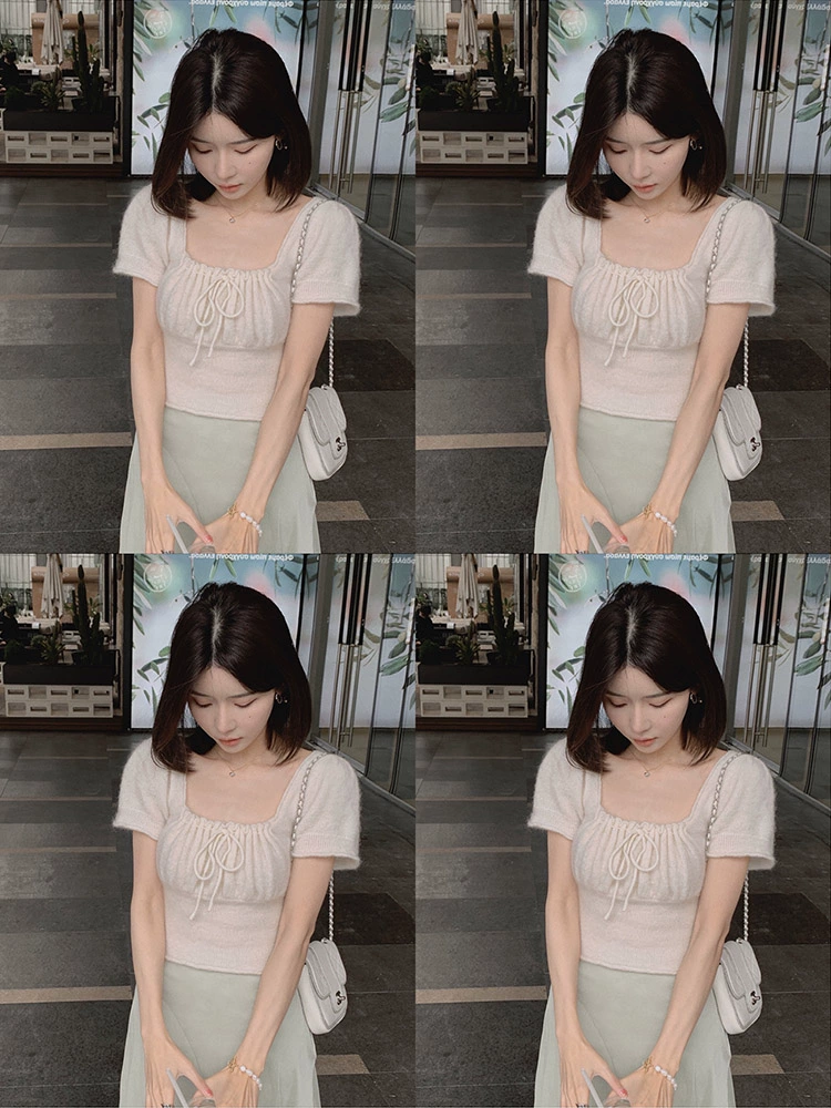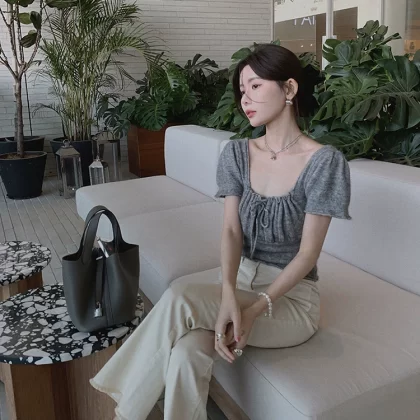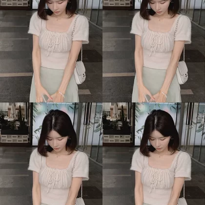 | nameOriginal | Square neck top design slim-fitting short-sleeved T-shirt with drawstring |