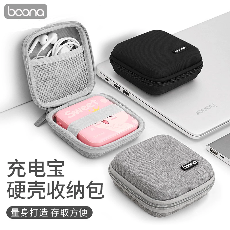 Square power bank storage bag, portable mini power bank, earphone data cable storage box, hard shell, shock-resistant and pressure-resistant