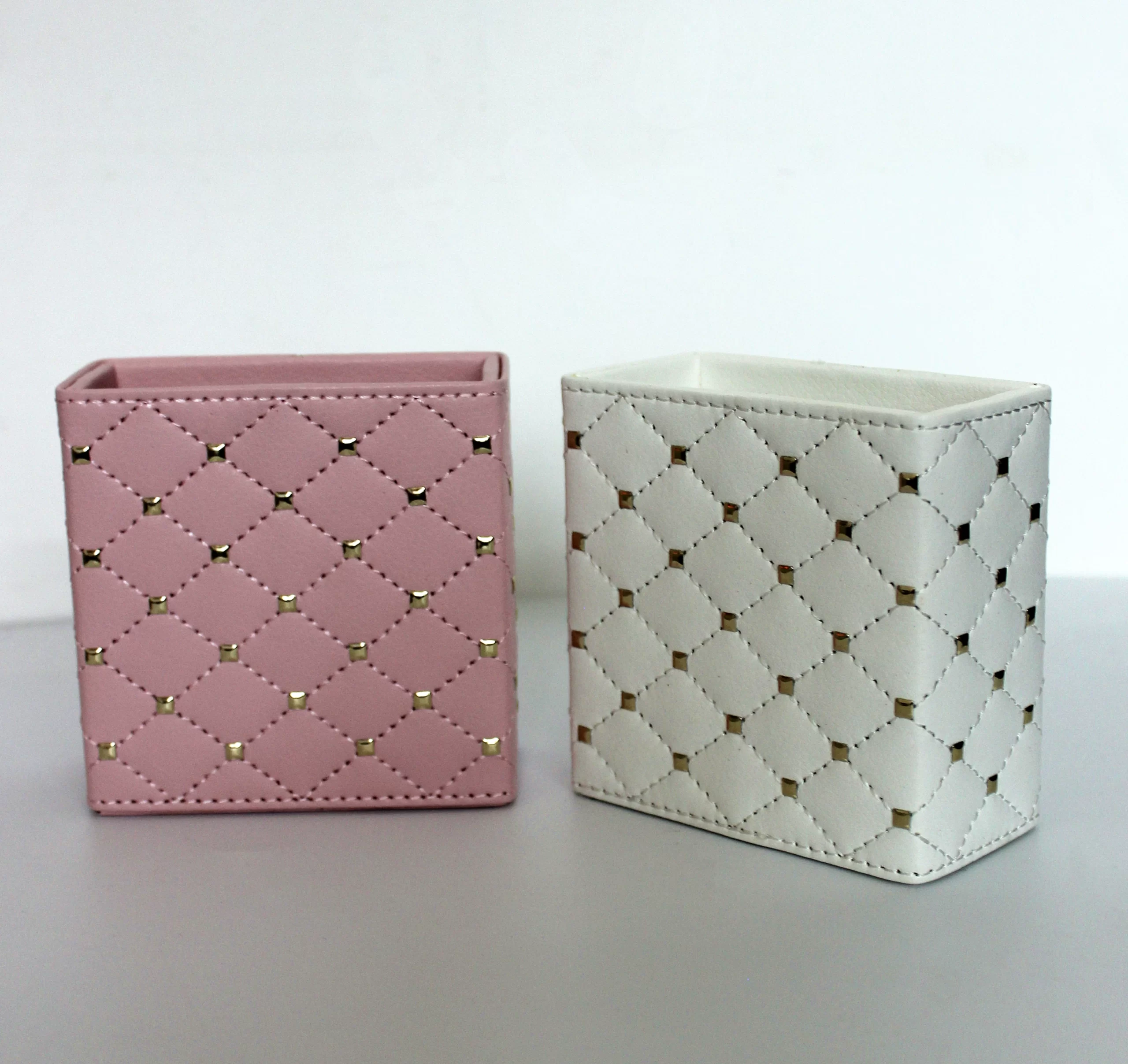| nameOriginal | Square PU leather makeup brush holder storage box pink and white portable makeup box pen holder with makeup artist protection |