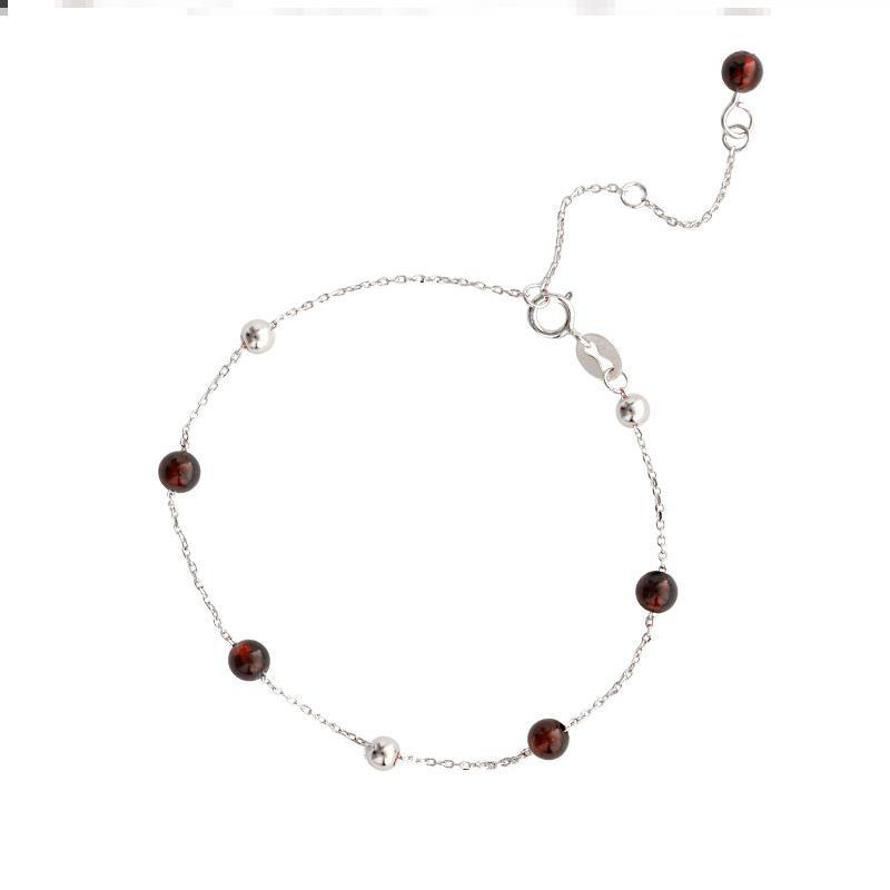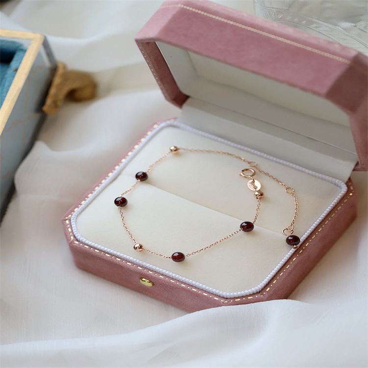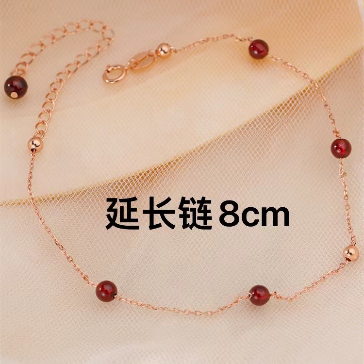 Square s925 Sterling Silver Red Garnet Anklet Women's Mori Niche Design Sense Fashion Simple Elegant Foot Jewelry Women