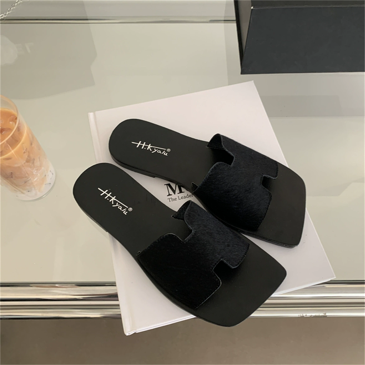 | nameOriginal | Square-toe flat-bottom one-word outer wear slippers for women 2024 summer new seaside vacation casual open-toe slippers |